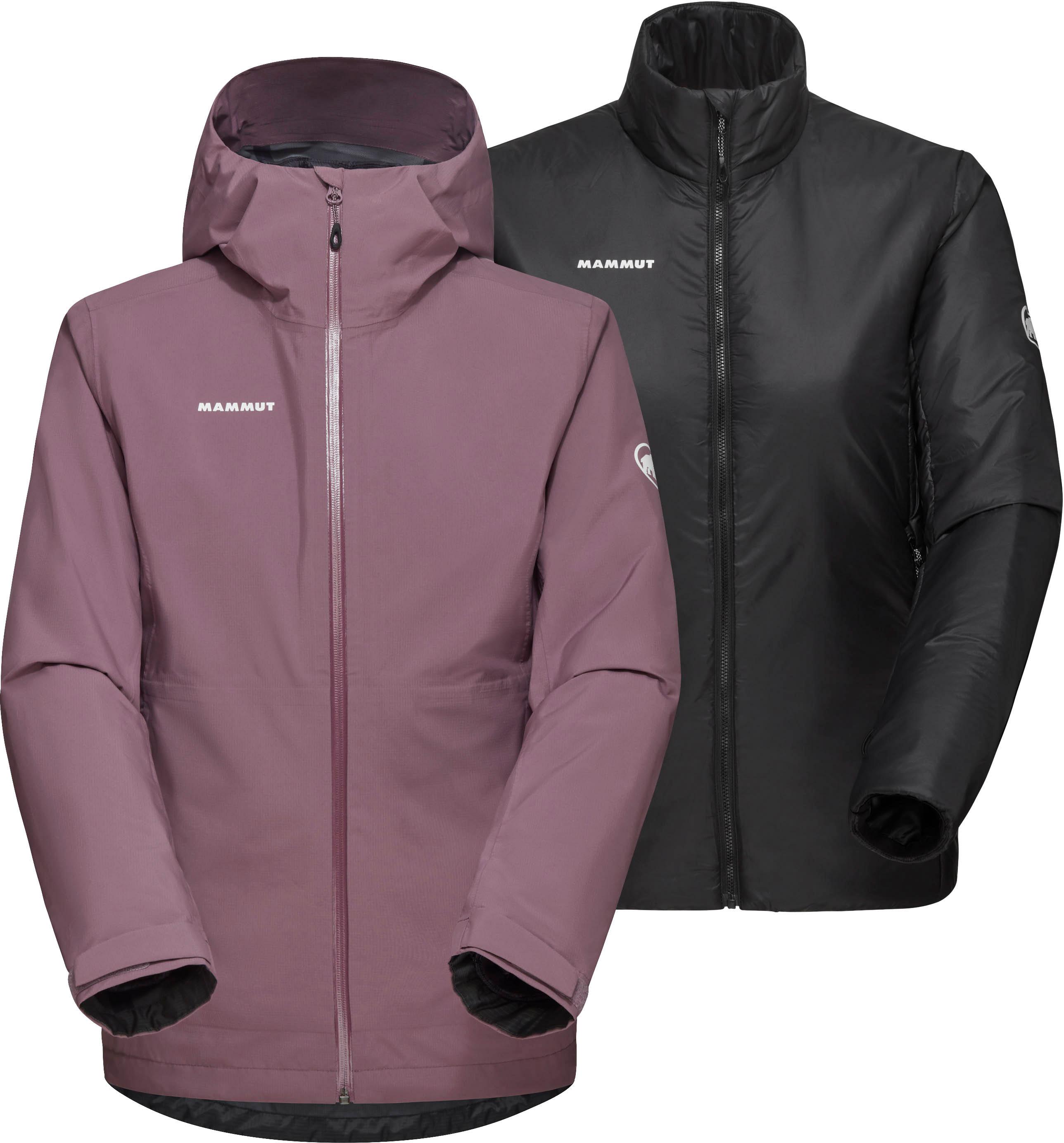 3in1-Jacke aus einer Hardshell-Außenjacke und einer herausnehmbaren, isolierenden Innenjacke; wasserdichte und atmungsaktive Außenjacke aus 2,5-lagigem Mammut DRY Tour-Material; ohne PFC hergestellte DWR-Imprägnierung; Wassersäule: 15.000 mm; verstellbare Kapuze und hochabschließender Kragen; wasserabweisender Frontreißverschluss; 2 Reißverschluss-Seitentaschen; belüftende Reißverschlussöffnungen unter den Armen; vorgeformte Ärmel mit Klettriegeln zur Weitenregulierung der Ärmelabschlüsse; Saum mit Kordelzug verstellbar; leichte Innenjacke mit einer wärmenden, strategisch platzierten Loopinsulation-Füllung aus recycelten Produktionsresten von Seilen; Stehkragen; durchgehender Frontreißverschluss; 2 Seitentaschen mit Reißverschluss; elastischer Arm- und Saumabschluss; Fair Wear; Obermaterial I 100% Polyamid (recycelt); Obermaterial II 100% Polyester (recycelt); Membran 100% Polyurethan; Futter 100% Polyester (recycelt); Isolierung 100% Polyester (recycelt).