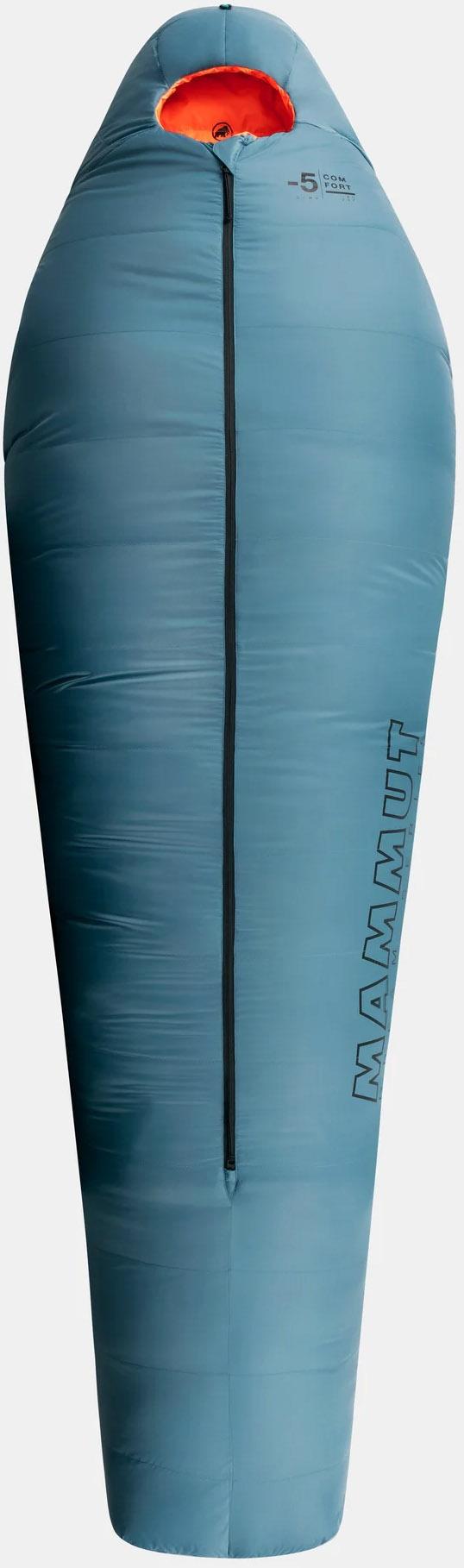 Komfortabler Daunenschlafsack in Mumienform; ideal für kalte Nächte; leicht und klein verpackbar; kann zur Decke umgewandelt werden; wasserabweisendes Obermaterial; Kapuze mit Isolationskammer und verstellbarem Tunnelzug; Wärmekragen; zentrierter 2-Wege-Reißverschluss für eine intuitive Klimaregulierung; isolierte Abdeckung entlang des Reißverschlusses, um Kältebrücken zu vermeiden; anatomische Fußbox; inklusive Packsack; mit Recyclingmaterial hergestellt; ohne PFC hergestellt; Temperaturbereich (Komfort/Limit/Extrem): 0/-5/-34° C; geeignet für eine Körpergröße von 175-195 cm; Schulterbreite: 85 cm; Packmaß komprimiert (H/B): ca. 22 x 19 cm; Packvolumen: 6,2 l; Gesamtgewicht ohne Packsack: ca. 1.190 g; Füllgewicht: ca. 600 g; Material 100% Polyester, Isolierung 100% Graue Entendaune (recycelt).