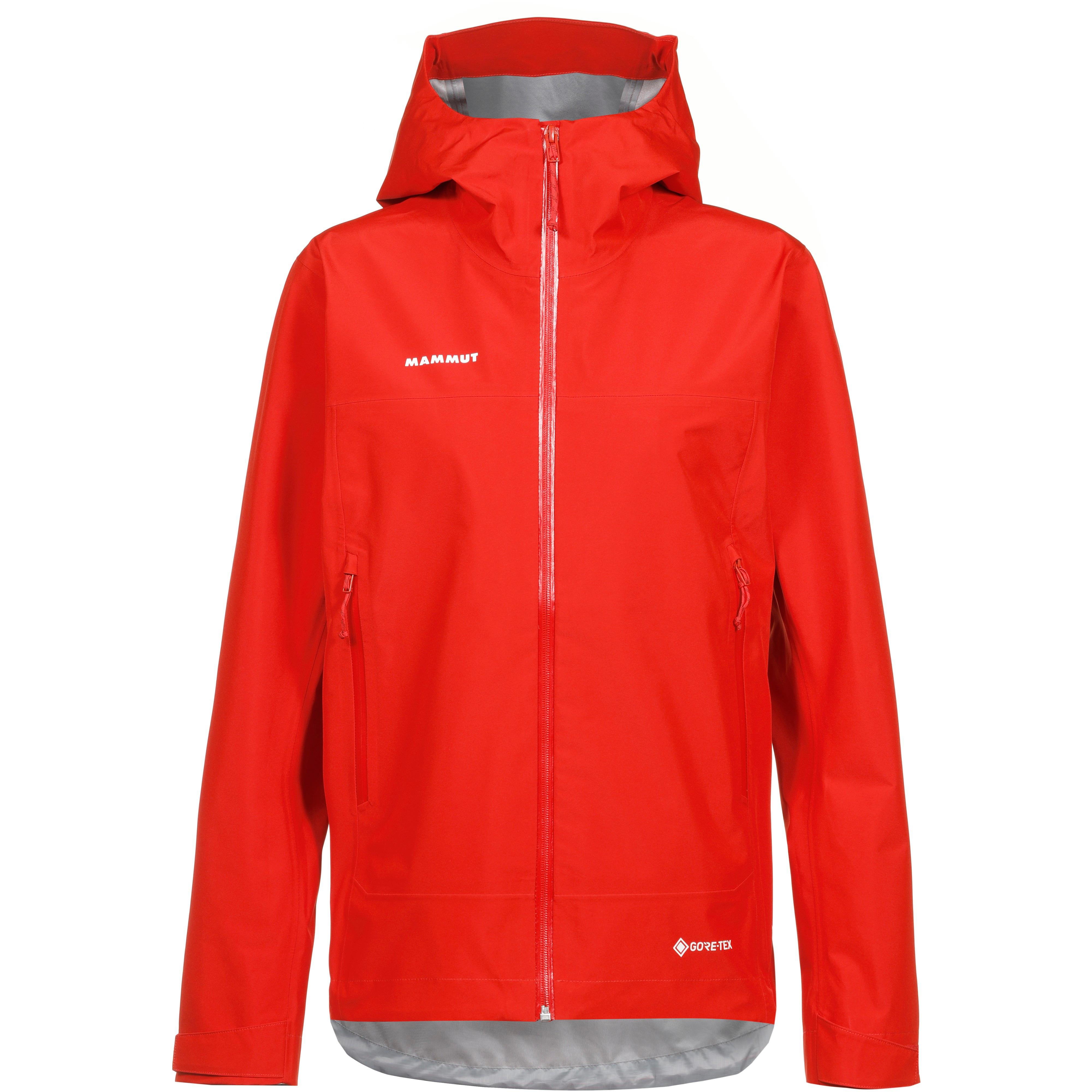 Hardshelljacke aus wind- und wasserdichtem sowie atmungsaktivem GORE-TEX 3-Lagen-Laminat; schweißableitend; vollständig verklebte Nähte; verstellbare Kapuze; wasserabweisende Reißverschlüsse; 2 rucksack-kompatible Seitentaschen mit Reißverschluss; vorgeformte Ärmel mit Klettriegeln an den Abschlüssen; Tunnelzug mit Stopper am Saum; normale Passform; mit Recyclingmaterial hergestellt; ohne PFC hergestellt; umweltfreundlich produziertes bluesign® product; Fair Wear Zertifizierung; Wassersäule: 28.000 mm; Gewicht: ca. 356 g; Material 100% Polyester.
