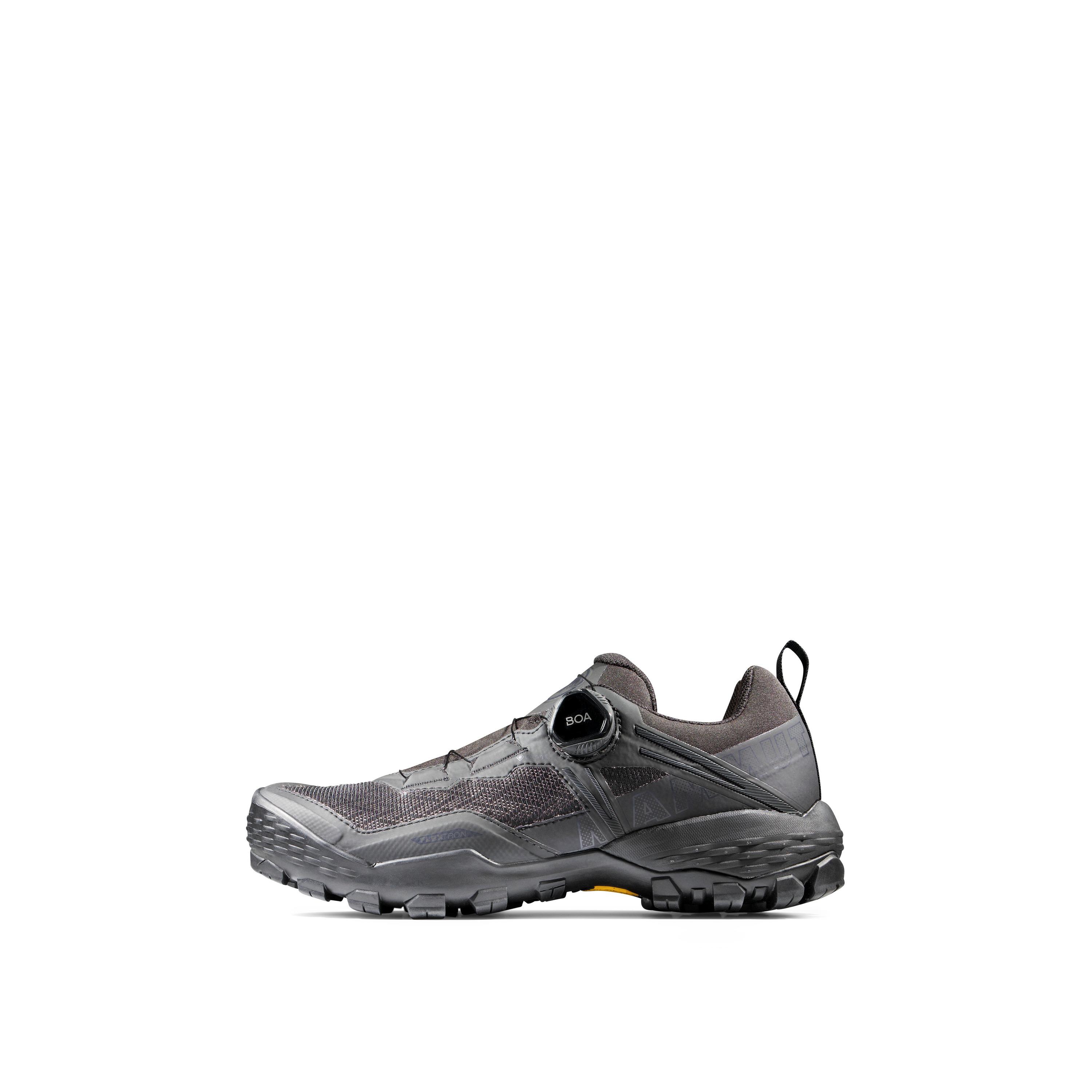 Immer einen Schritt voraus: Dank Einfachzunge schlüpfst du in diesen Schuh, wie in eine Socke – und so fühlt er sich auch an. Spätestens, wenn du das BOA® Fit System festgezogen hast, will dein Fuss hier nicht mehr weg. Mit dem macht die Federstahlsohle nämlich genau das, was der Name vermuten lässt: Zum einen federt sie, zum anderen verleiht sie deinem Gang zuverlässige Stabilität, unterstützt also die natürliche Bewegung bei jedem deiner Schritte. Der dadurch effizientere Energieeinsatz hat längere Reserven im Gebirge zufolge. Und dank Vibram-Sohle hast du beste Chancen, dass der Ducan BOA Low GTX dort bleibt, wo du ihn hinsetzt. Los gehts.