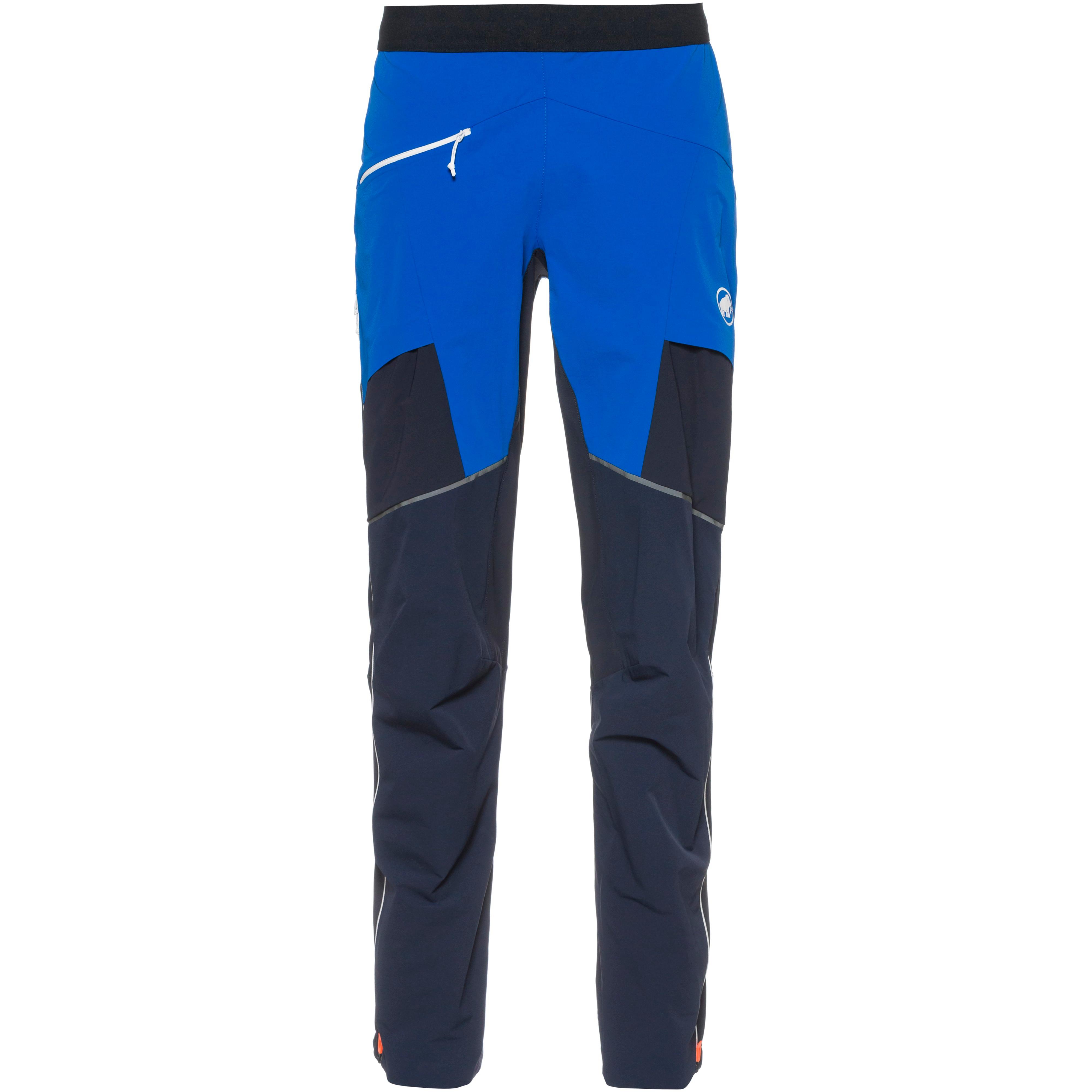 Enganliegende, leichte Softshellhose; stark windabweisend und feuchtigkeitsableitend dank Body Mapping; Laser-Cut-Perforierung; wasserabweisend; schnelltrocknend und atmungsaktiv; bewegungsfreundlicher Stretch; elastischer Gummibund mit Kordelzug; 1 Seitentasche mit Reißverschluss; seitliche 2-Wege-Reißverschlüsse über drei Viertel der Beinlänge; vorgeformte Knie; Stiefelhaken; reflektierende Elemente; Color-Blocking; Logoprint am Oberschenkel; ohne PFC hergestellte DWR-Imprägnierung; Material 83% Polyamid (recycelt), 17% Elastan.