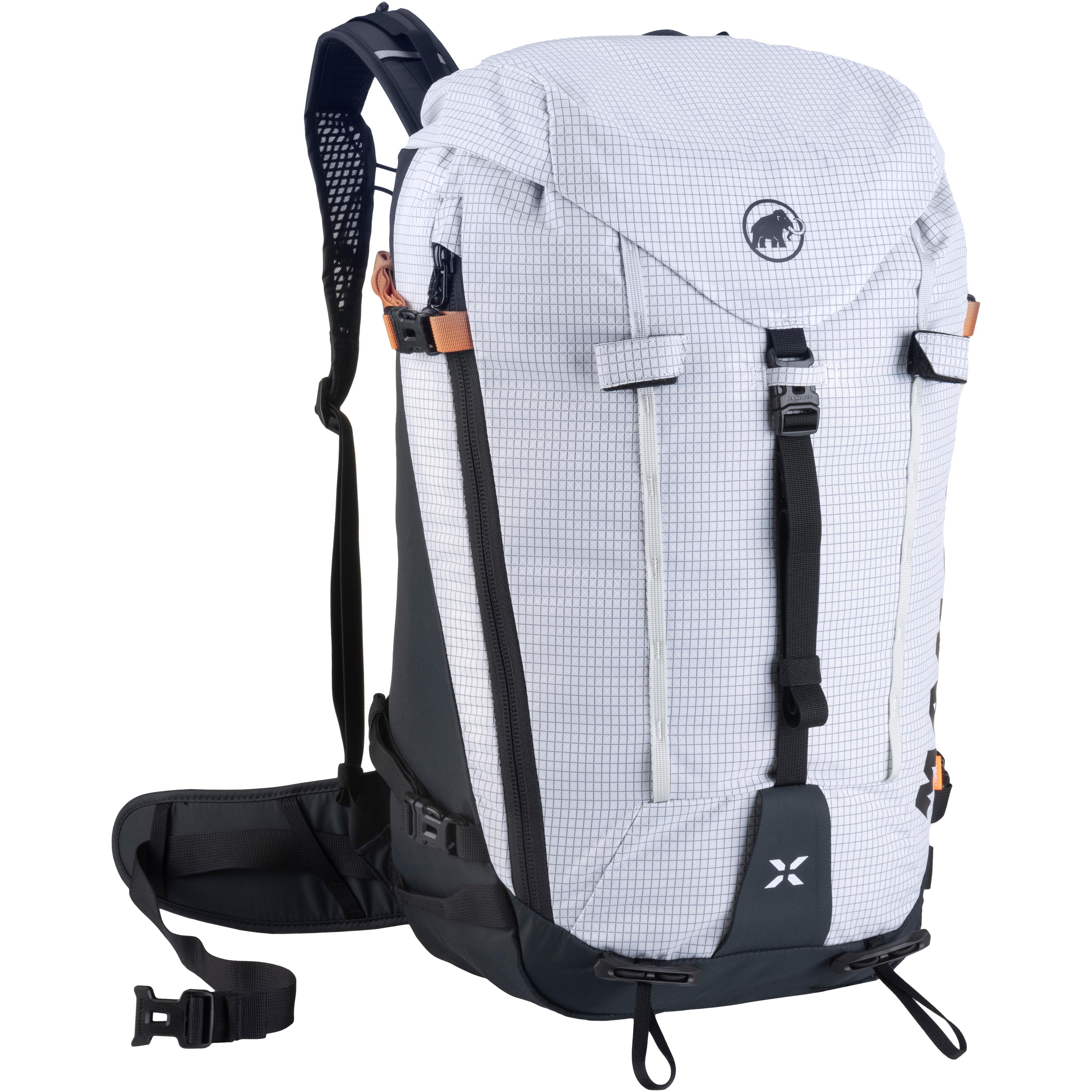 Speziell für Damen konstruierter Wanderrucksack aus leichtem und wasserabweisendem Material; komfortables Kontaktrückensystem; elastischer Brustgurt; anatomisch geformte, verstellbare Hüft- und Schultergurte; Kompressionsriemen; verstärkte seitliche Fixierung; Hauptfach mit Rolltop-Öffnung und Innentaschen; abnehmbarer Deckel mit Außen- und Innentasche; seitlicher Reißverschlusszugang; 2 Eispickelhalterungen; Schaufel- und Sondenfach; Trekkingstock-Halterung; Seilfixierung auf dem Deckel; reflektierende Elemente; bluesign® product; ohne PFC hergestellte DWR-Beschichtung; Fair-Wear-Produkt; vorwiegend Recyclingmaterial; Volumen: ca. 38 l; Maße (L/B/H): ca. 27 x 30 x 55 cm; Gewicht: ca. 1.150 g; Material 90% Polyamid, 10% Polyester.