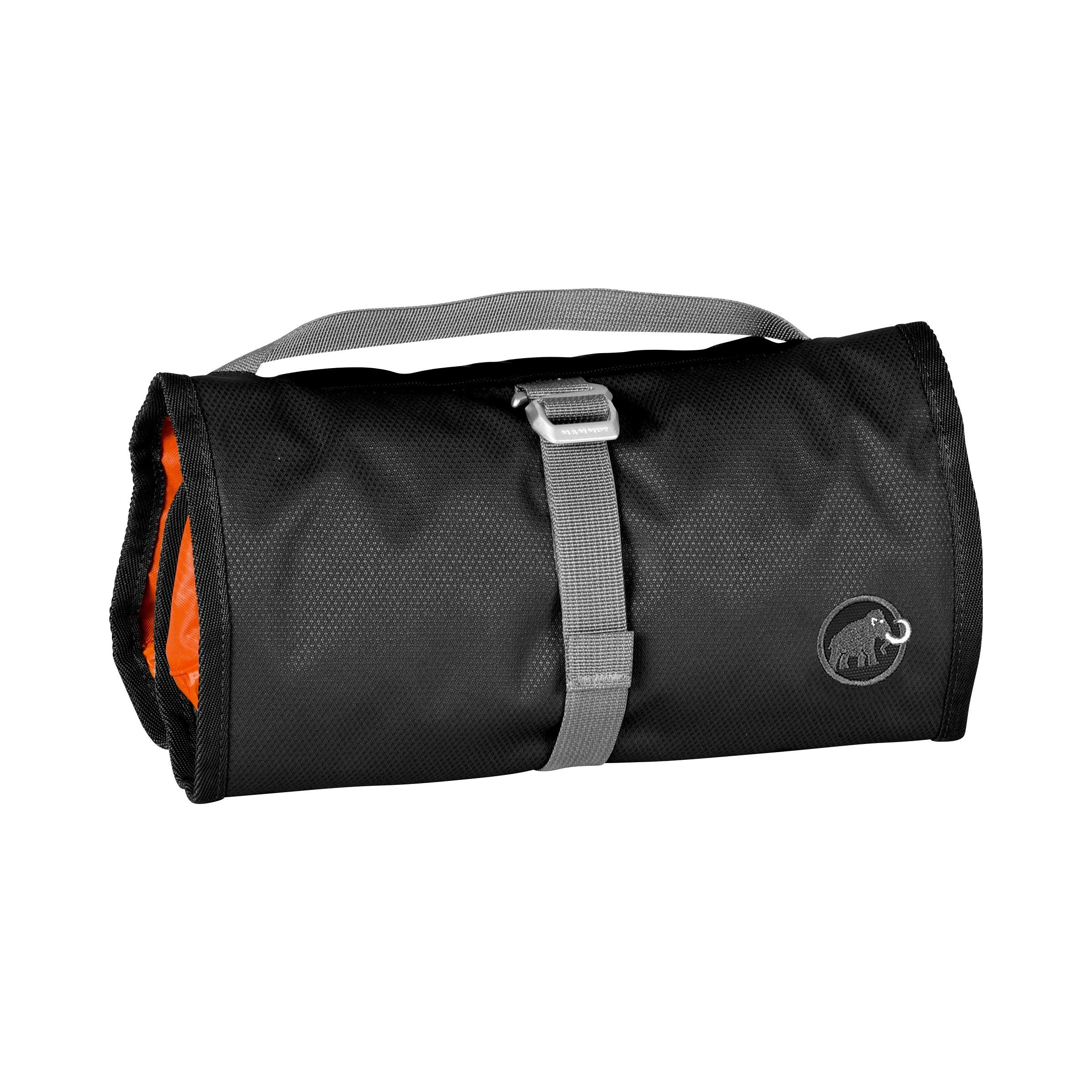 - S-Variante als sehr kompakter Touren-Waschbeutel, mit 2 Einschubfächern, Spiegel, Reissverschlussfach und Metallhaken zum Aufhängen