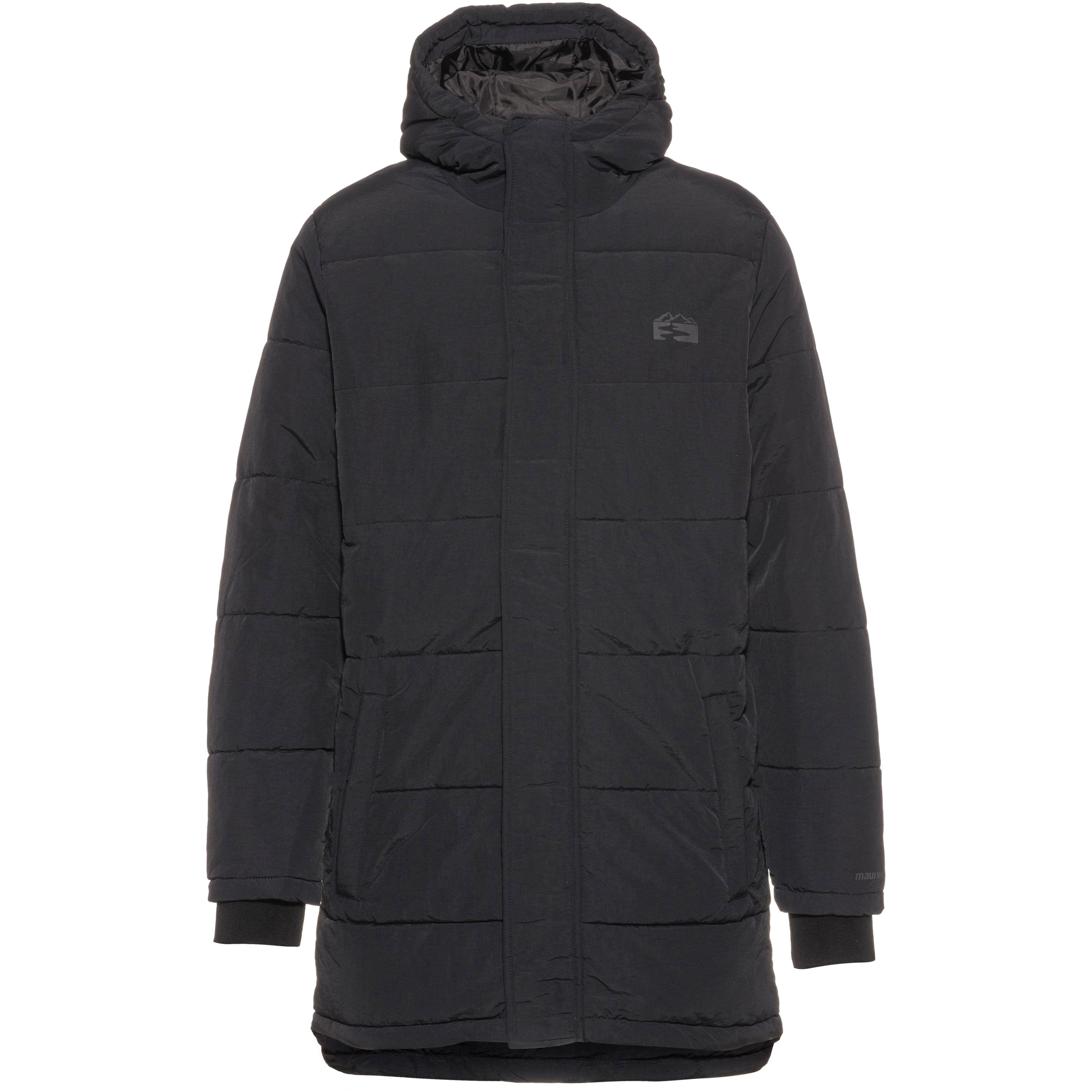 Wetterbeständige Funktionsjacke mit dauerhaft wasserabweisendem, ohne PFC hergestelltem Bionic Finish® Eco-Finish; winddicht; atmungsaktiv; schmutzabweisend; Kapuze mit Gummizug und Stopper; hochabschließender Kragen; mit Klettverschlussleiste verdeckter 2-Wege Frontreißverschluss; 2 seitliche Reißverschlusstaschen mit verlängerten Zippbändchen; Armabschlüsse mit integrierten Rippbündchen; Saumabschluss mit Gummizug und Stopper; synthetische Wärmeisolierung; Recyclingmaterial; Material I 100% Polyamid (recycelt), Material II 100% Polyester.