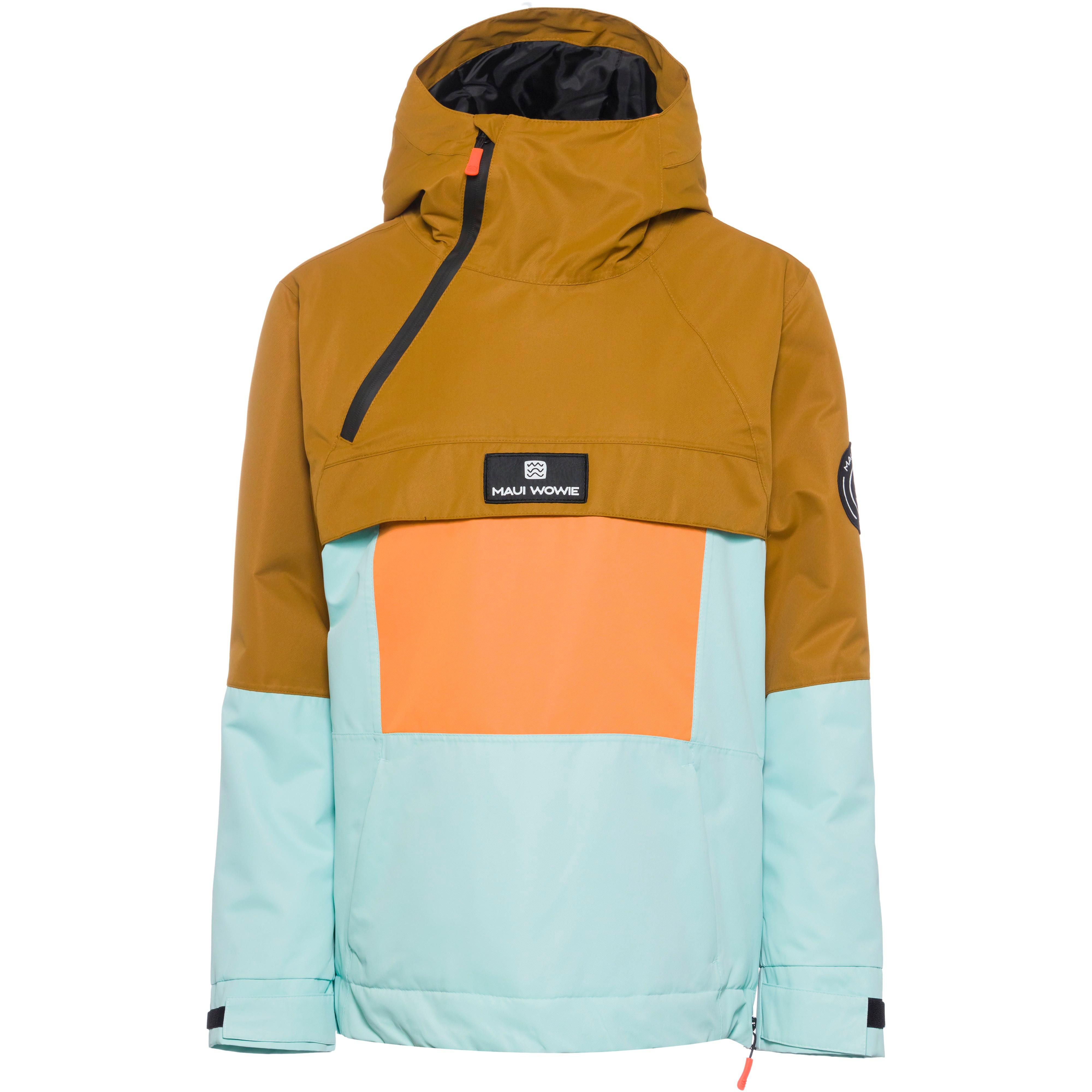 Snowboardjacke mit ohne PFC hergestellter, dauerhaft wasserabweisender Bionic Finish® Eco Imprägnierung; Wassersäule: 8000 mm; windabweisende Funktion; versiegelte Nähte; geräumige Kapuze; Kragen mit Kinnschutz; asymmetrischer, halblanger Frontreißverschluss; vorgeformte Ärmel mit integrierten, elastischen Cuffs und Daumenlöchern; weitenregulierbare Armabschlüsse; lange Belüftungsreißverschlüsse in den Seiten; 1 große Fronttasche mit Klappe und Klettverschluss; 2 Seitentaschen mit Reißverschlüssen; verlängerte Zippbändchen; integrierter Schneefang; Stopper im Saum; Recyclingmaterial; Material 100% Polyester.