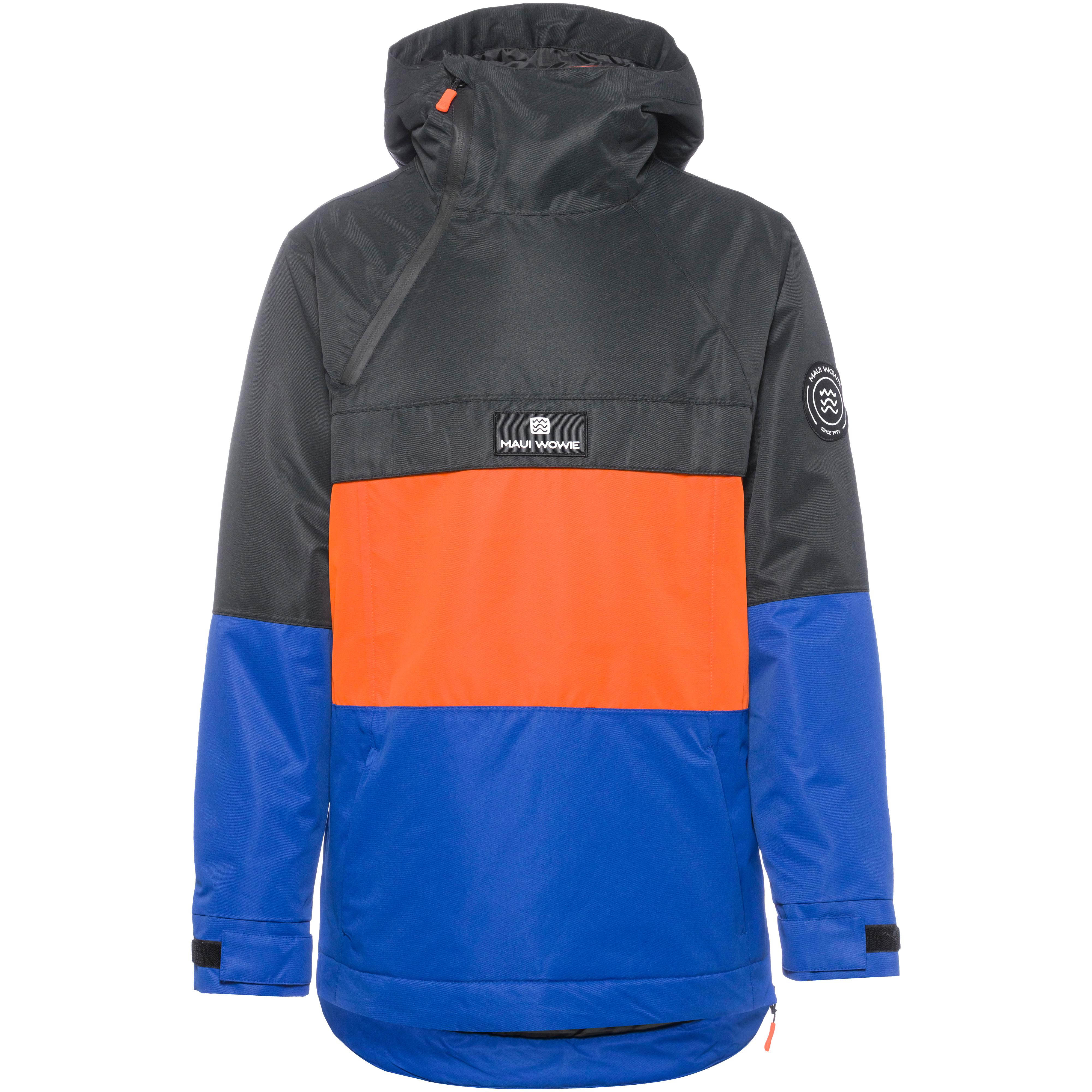 Wind-und wasserdichte Snowboardjacke zum Überziehen, mit dauerhaft wasserabweisendem, ohne PFC hergestelltem Bionic Finish® Eco; Wassersäule 8000 mm; atmungsaktiv; Kapuze mit Gummizug; hochabschließender Kragen mit Kinnschutz; halblanger, asymmetrischer Frontreißverschluss; geräumige Tasche auf der Front; 2 seitliche Reißverschlusstaschen; diverse Logopatches; weitenregulierbare Armabschlüsse mit Klettriegel sowie integrierten, elastischen Bündchen mit Daumenschlaufen; abgerundeter Saum mit Gummizug und Stopper; integrierter, fester Schneefang mit Druckknopfverschluss; synthetische Wärmeisolierung; Material 100% Polyester (recycelt).