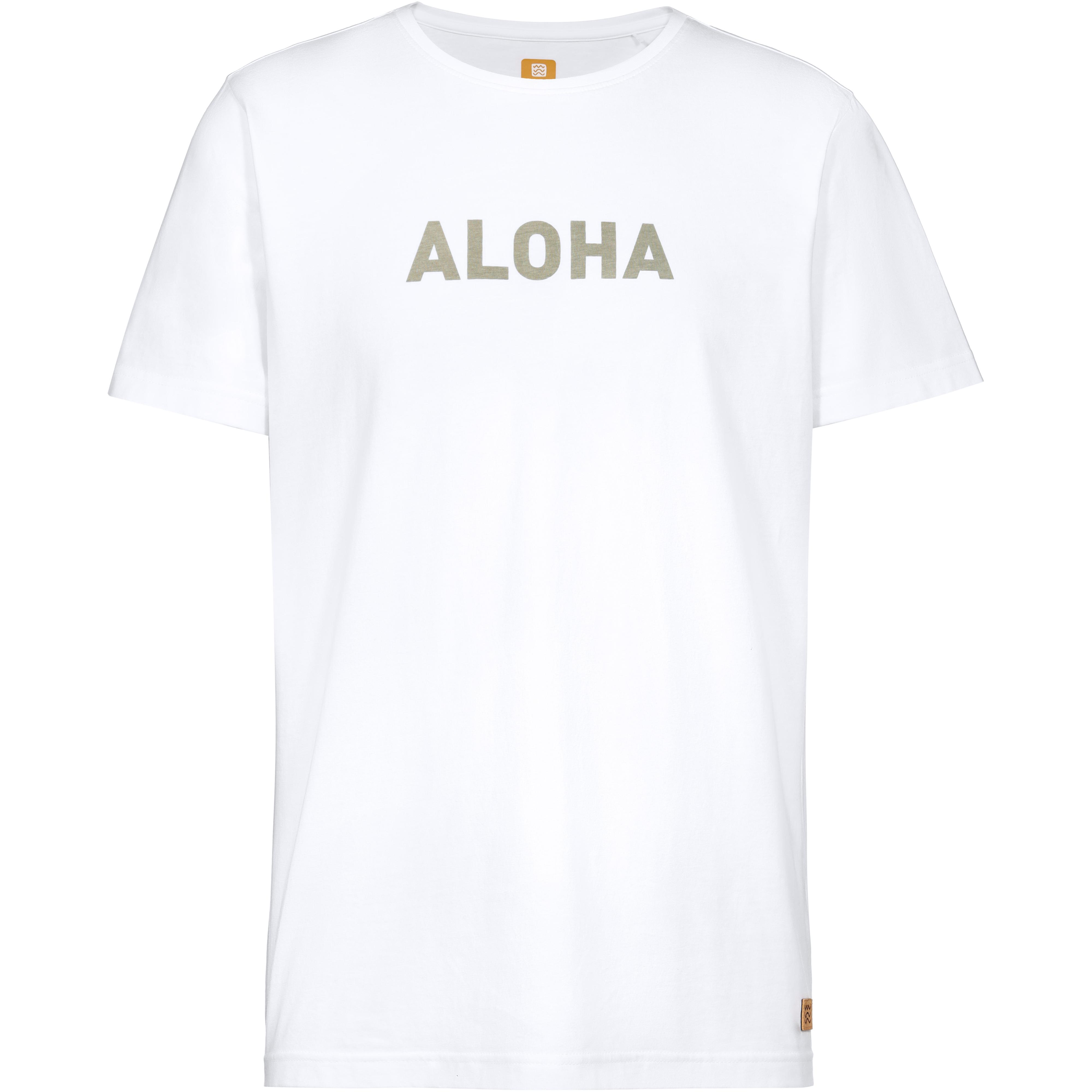 T-Shirt mit Aloha- und Servus-Aufschrift auf Vorder- und Rückseite; aus weichem Single Jersey; antistatisch und pilling-frei; Rundhalsausschnitt; reguläre Passform; Material 100% Baumwolle (Biobaumwolle).