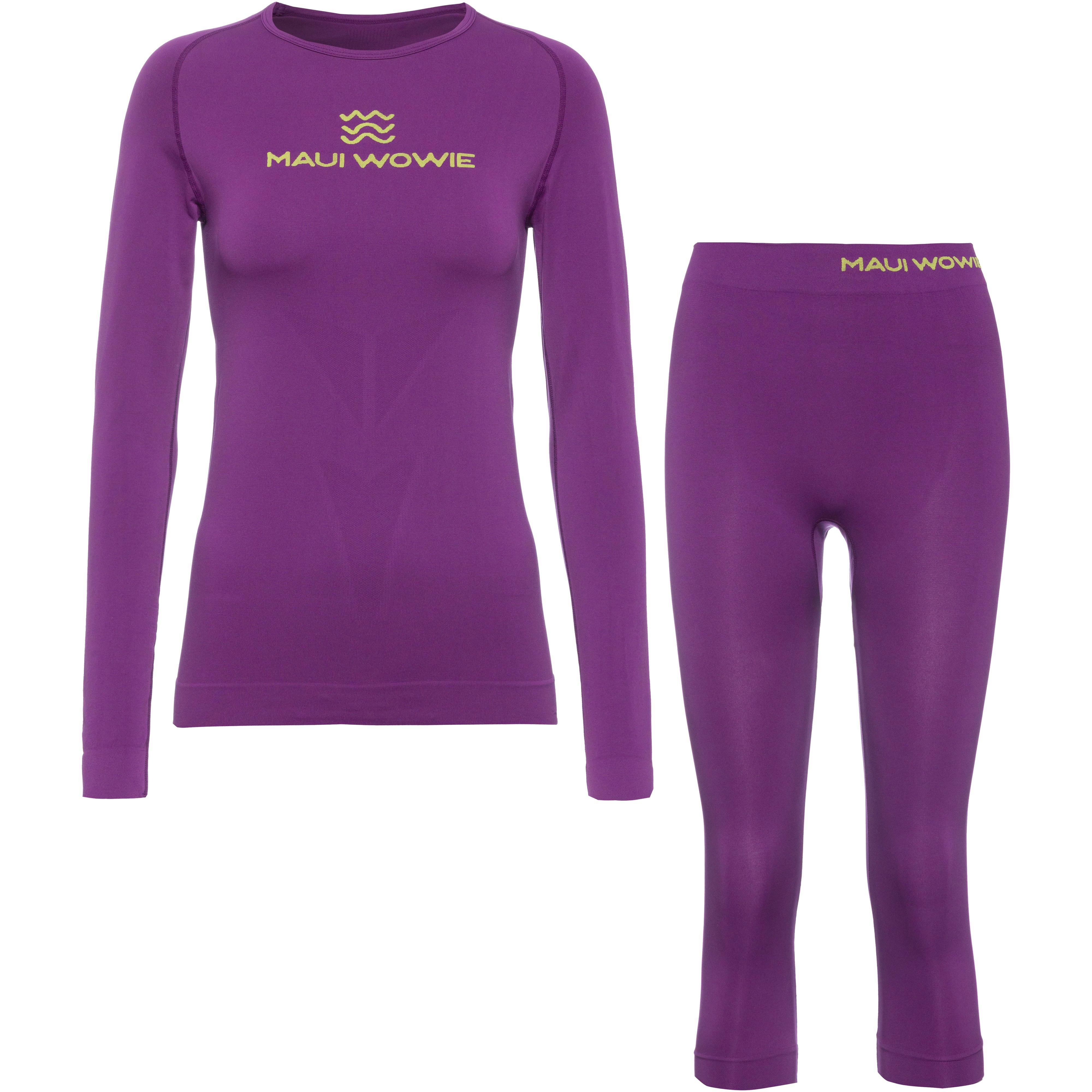 Wäscheset aus feuchtigkeitsregulierendem und elastischem Gewebe; hält den Körper warm und trocken; enganliegende Passform; Oberteil mit Rundhalsausschnitt und langen Raglanärmeln; Logoprint auf der Vorderseite des Shirts; 3/4-lange Hose mit mittelhohem, elastischem Bund; Material 96% Polyethylen, 4% Elastan.