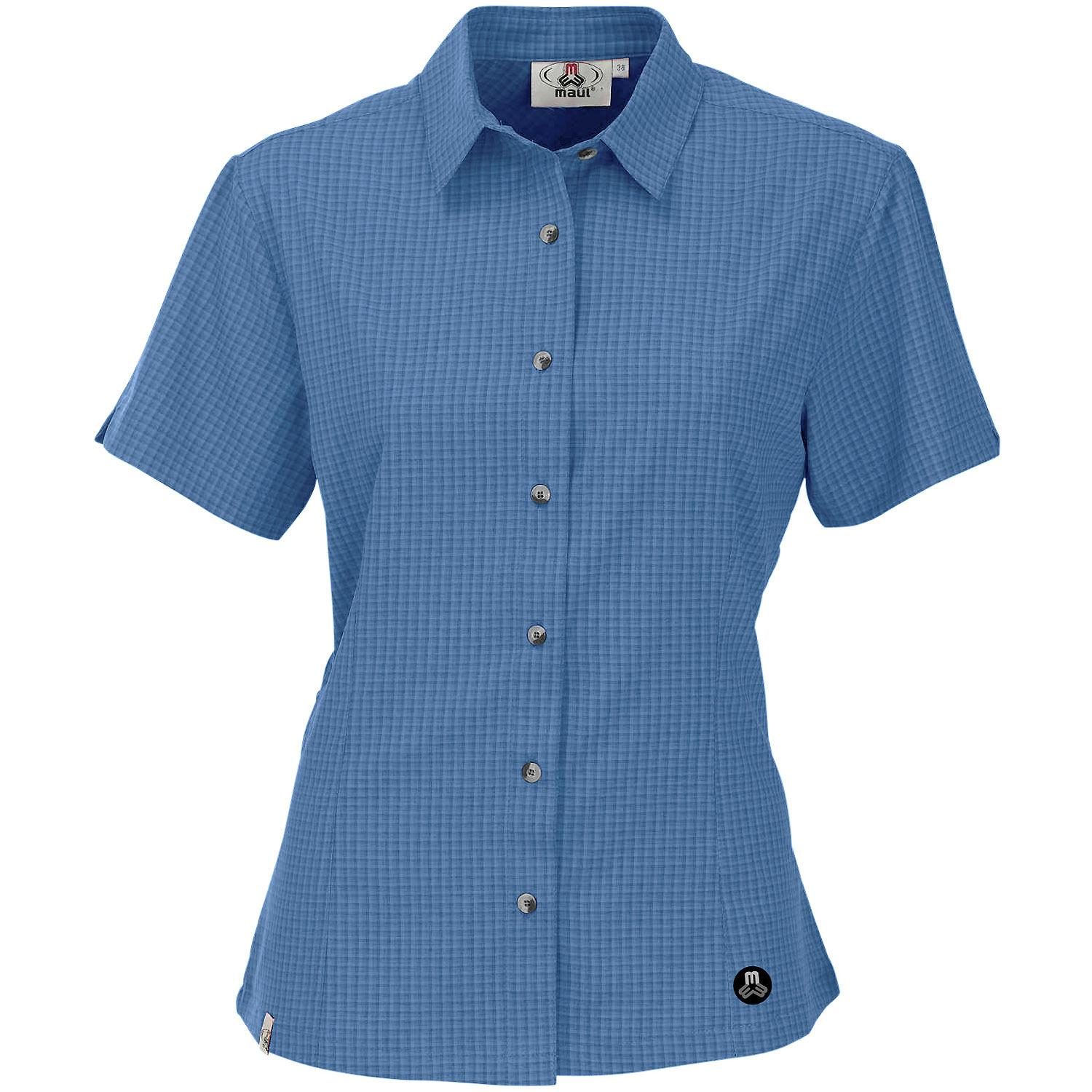 Sportliche Kurzarmbluse Halserspitze II von Maul mit feinem Karomuster. Sehr elastisch. Atmungsaktiv, schnelltrocknend. Pflegeleicht. Seitentasche mit nahtfeinem Reißverschluss. Kategorie: Trekking Damen. Einsatzgebiete: City, Trekking, Wandern, Freizeit, Sport, Reisen.