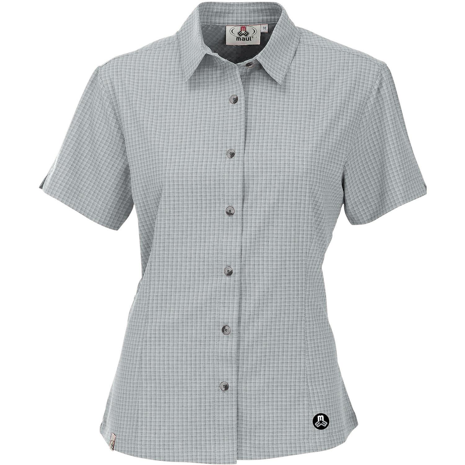 Sportliche Kurzarmbluse Halserspitze II von Maul mit feinem Karomuster. Sehr elastisch. Atmungsaktiv, schnelltrocknend. Pflegeleicht. Seitentasche mit nahtfeinem Reißverschluss. Kategorie: Trekking Damen. Einsatzgebiete: City, Trekking, Wandern, Freizeit, Sport, Reisen.