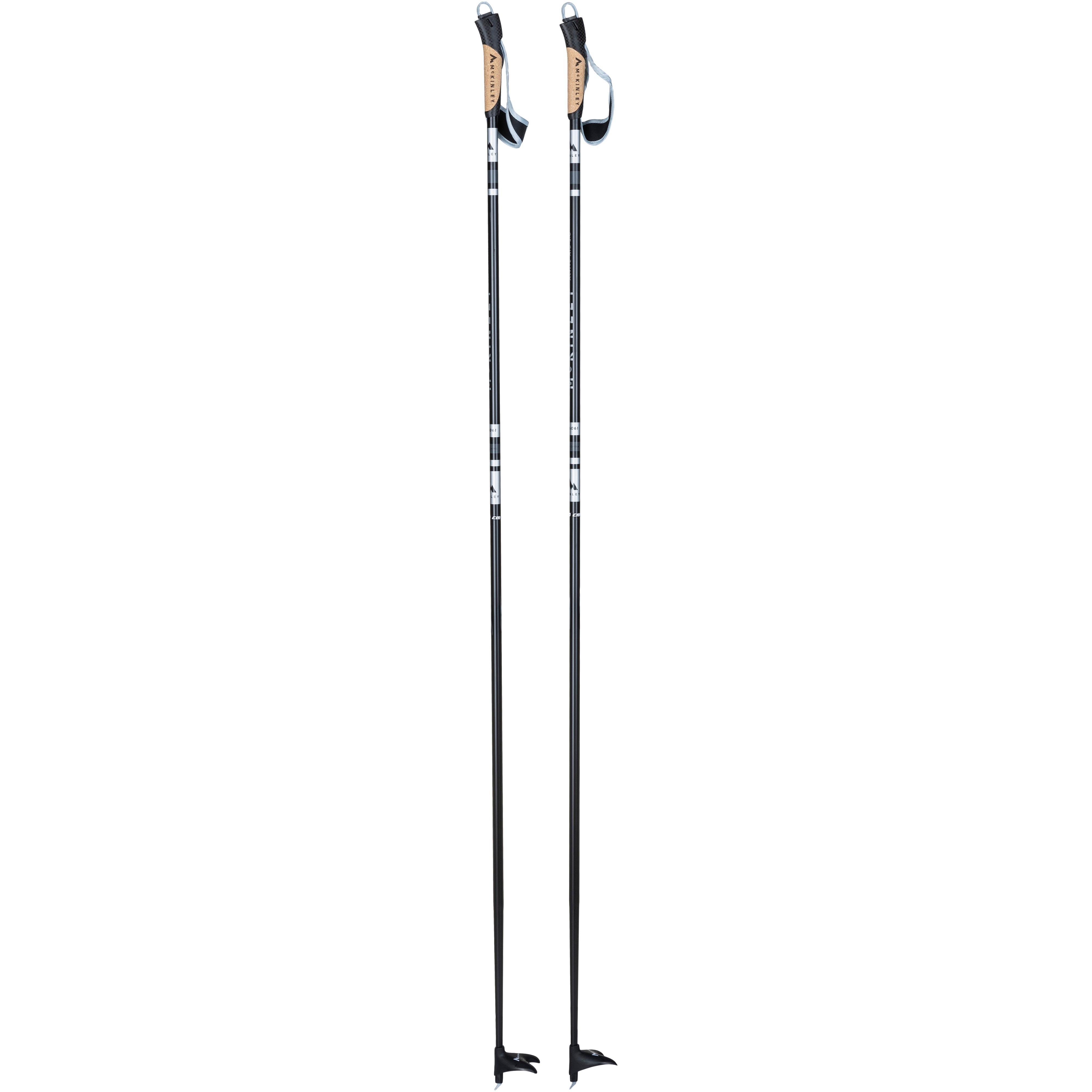 Langlaufstock mit robustem Aluminium-Schaft für optimale Stabilität; ergonomischer Korkgriff; Twisted-Biathlon-Schlaufe für flexible Handgelenkbewegung; Touring-Teller für festen Halt bei geringem Gewicht.