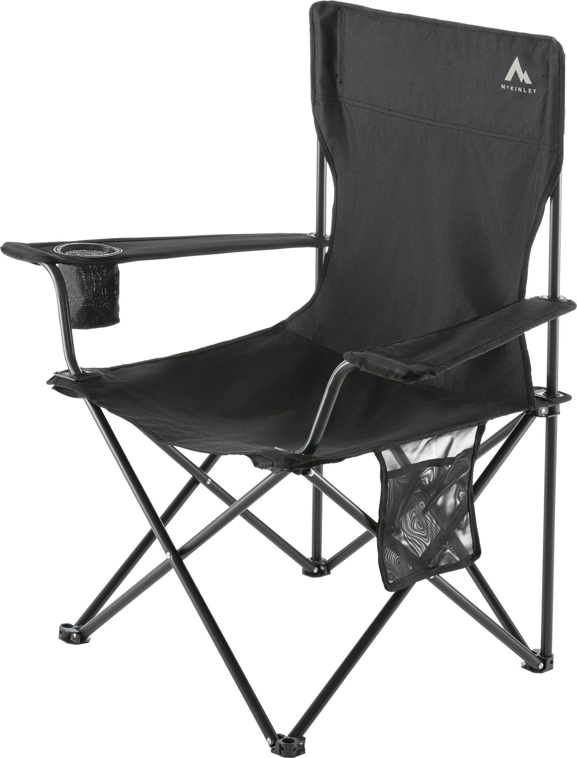 Faltbarer Campingstuhl mit Armlehnen; Bezug aus robustem Oxford-Polyester; Gestänge aus Aluminium; inklusive Tragetasche mit Schultergurt; Maße: ca. 54 x 54 x 80 cm; Gewicht: ca. 2,7 kg; max. Belastung: 120 kg.