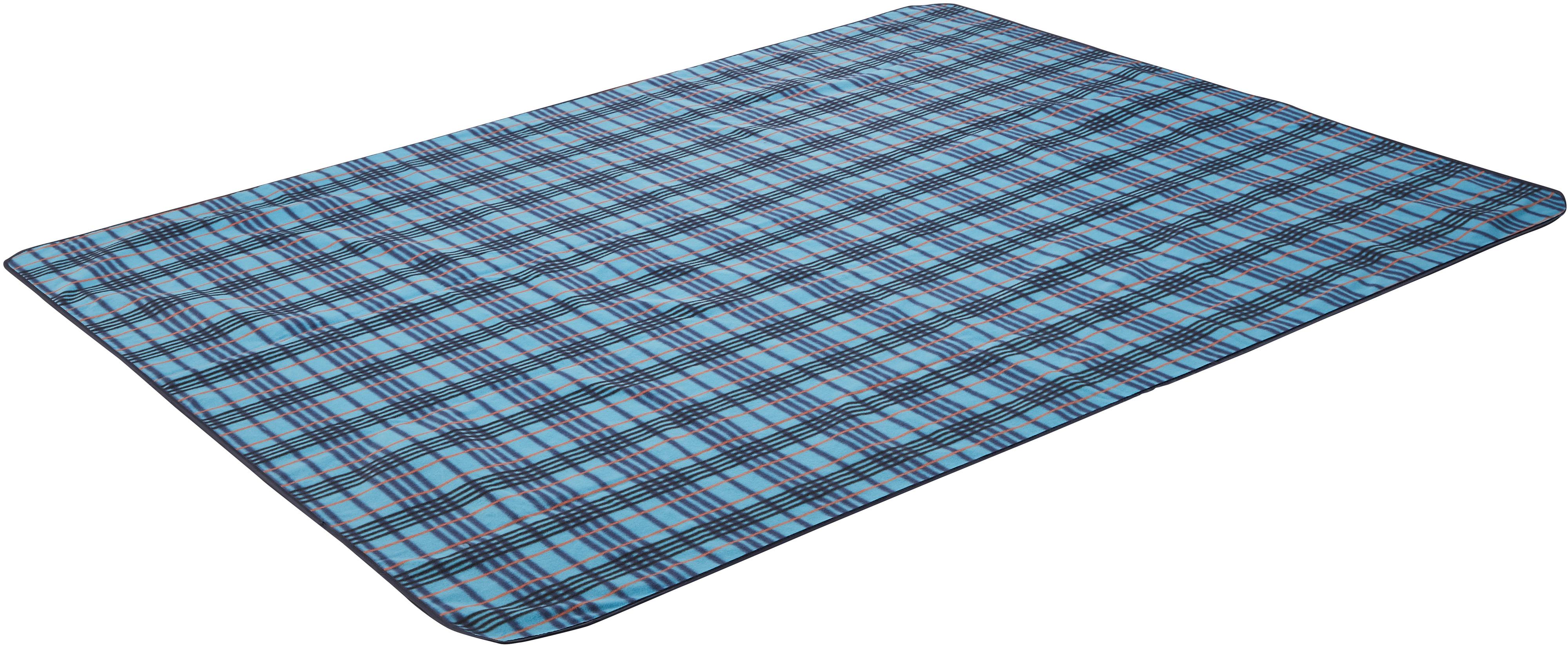 McKinley CAMPING-DECKE PICNIC RUG STRIPED. Karierte Decke für Camping, Picknick etc.; aus weichem Fleece; abgerundete Ecken; zusammenroll- und mit Klettverschluss fixierbar; wasserabweisender Boden aus PEVA; Größen: 200 x 180 cm; Material 100% Polyester.