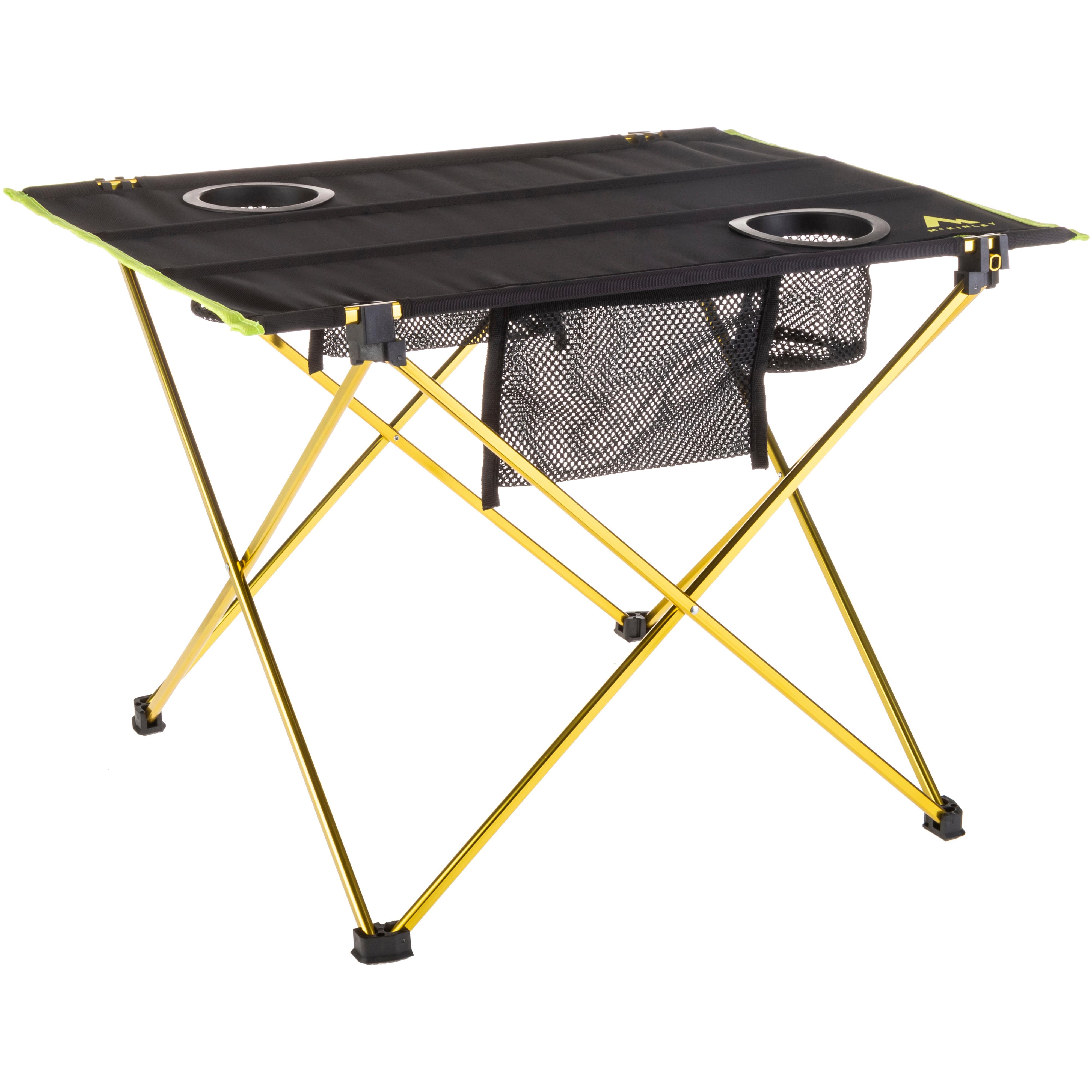 Ultra leichter Campingtisch mit Faltenkonstruktion; mit ohne PFC hergestelltem, wasserabweisendem Funktionsmaterial; geeignet für vielfältige Einsätze; leichtes, faltbares Design für schnelles Auf- und Abbauen; 2 Becherhalter; 2 Mesh Taschen zum Verstauen von Kleinigkeiten; mit Tasche für einfachen Transport; Gewicht: ca. 820 g; Maße (H/B/T): ca. 39.5 x 42 x 57 cm.