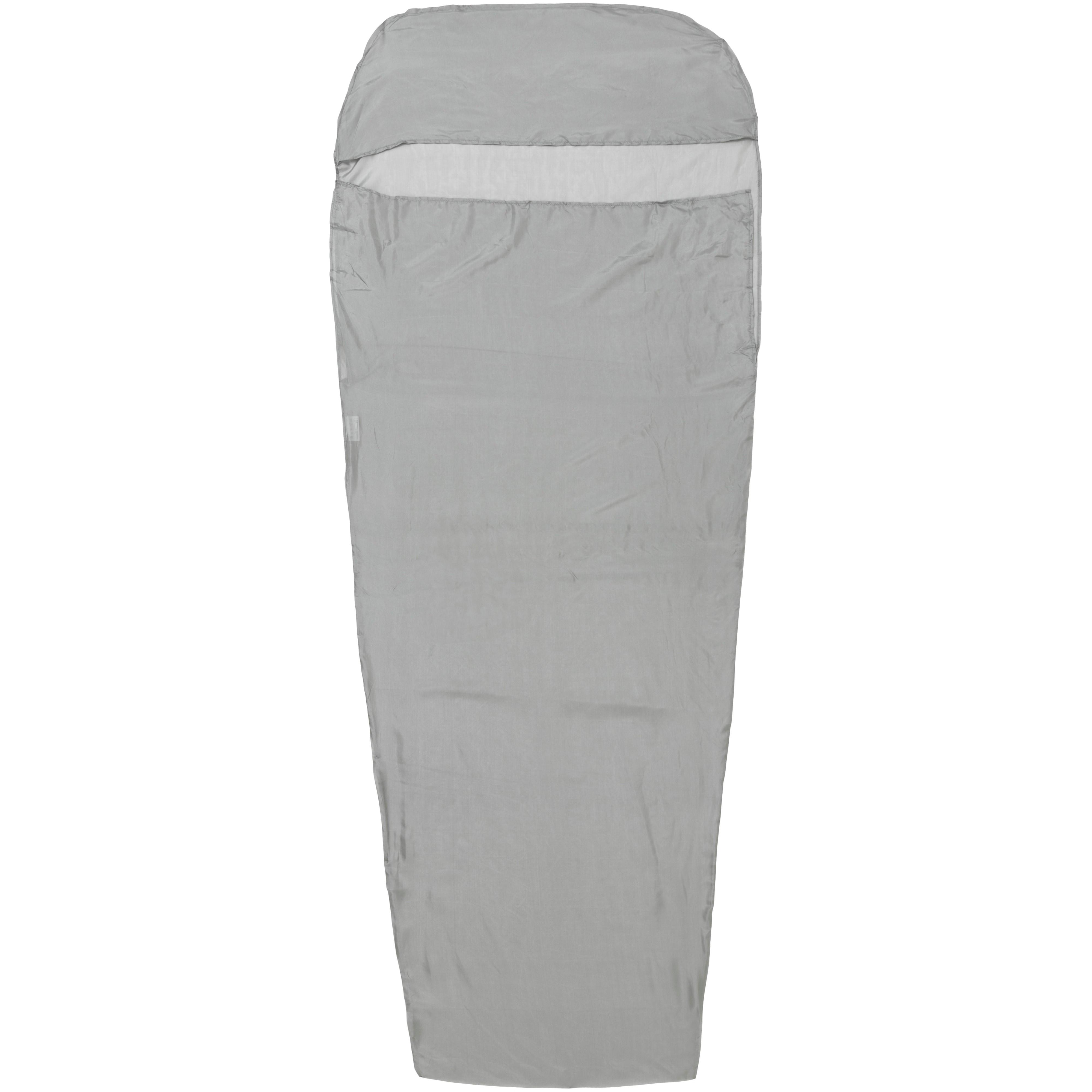 Hüttenschlafsack aus Seide, in Mumien-Form; seitlicher Einstieg; Kissenfach; geringes Packmaß; inklusive Packsack; Maße: ca. 220 x 85/50 cm; Packmaß: ca. 14 x Ø7 cm Gewicht: ca. 95 g.