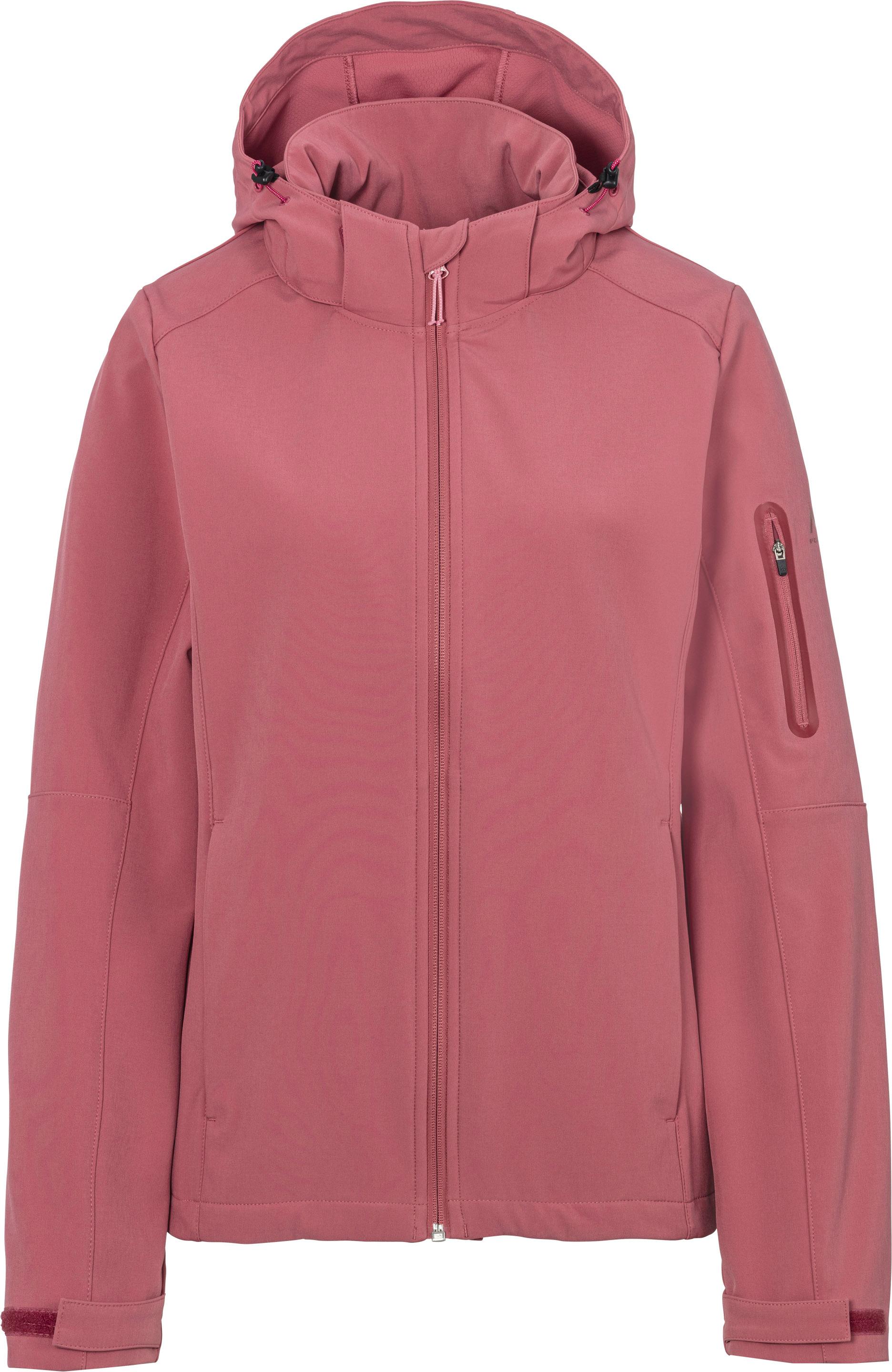 Softshelljacke mit verstellbarer Kapuze, Kinnschutz und durchgehendem Frontreißverschluss; 2 seitliche Reißverschlusstaschen; 1 Armtasche mit Reißverschluss; Ärmelabschlüsse mit Klettriegeln; Material 100% Polyester.