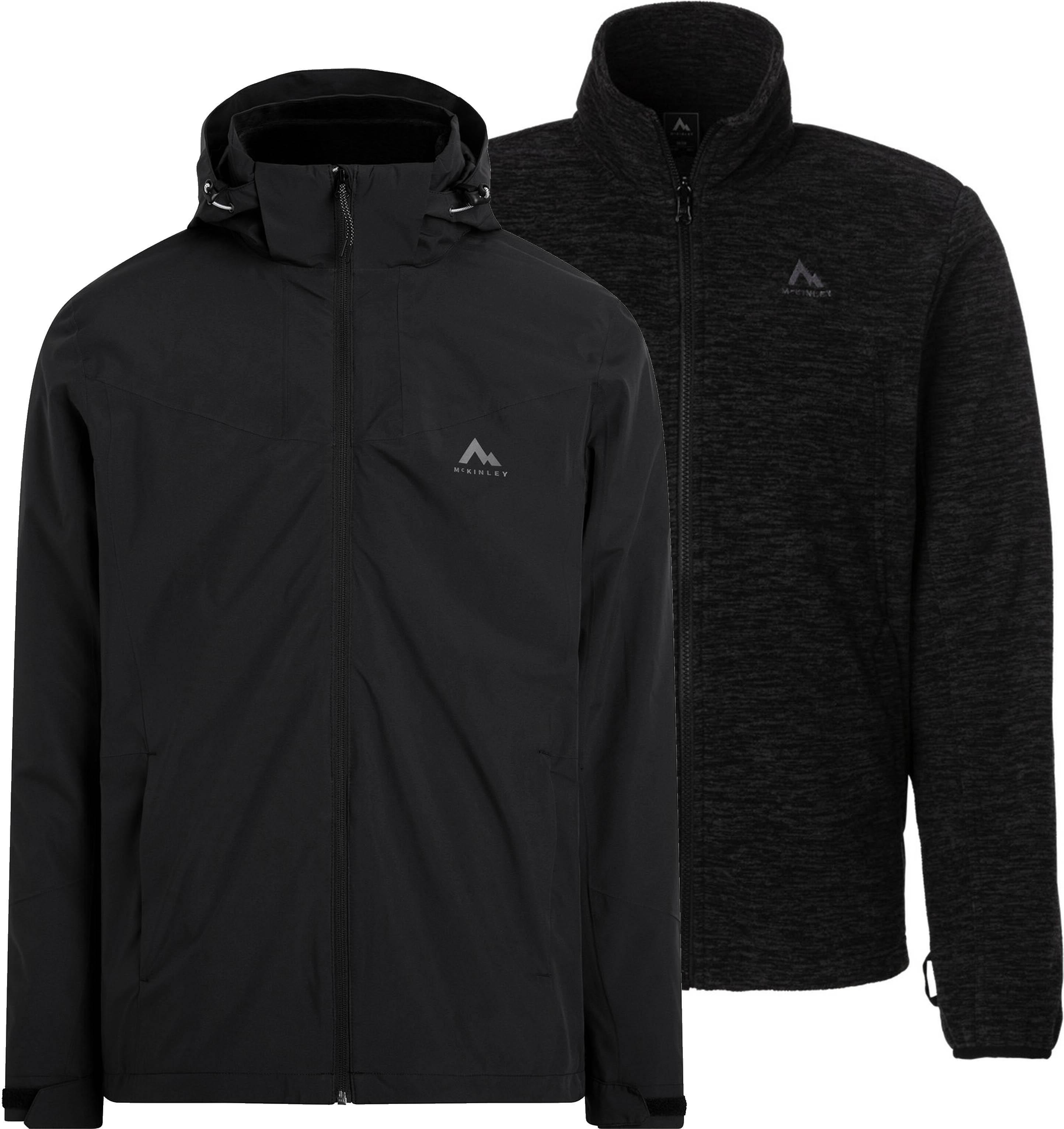 Praktische Doppeljacke für verschiedene Wetterbedingungen; Außen- und Innenjacke können separat oder in Kombination getragen werden; Außenjacke mit Aquamax-Technologie; wasser- und winddicht sowie atmungsaktiv; PFC-frei; versiegelte Nähte; abnehmbare, verstellbare Kapuze; verstellbare Ärmelabschlüsse; 2 Reißverschlusstaschen; Meshfutter; wärmende Fleece-Innenjacke mit Stehkragen; normale Passform; Material 100% Polyester.