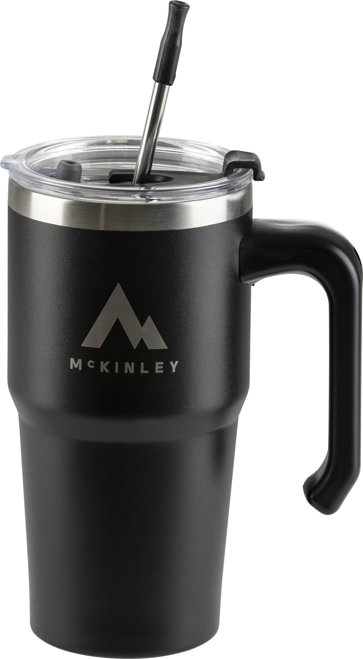 Trinkbecher mit praktischem Henkel und Strohhalm; doppelwandige Vakuumisolierung aus Edelstahl; hält bis zu 12 h kalt oder bis zu 6 h warm; auslaufsicherer Schraubdeckel; matt veredeltes Design mit Labelprint; leicht zu reinigen; 600 ml Fassungsvermögen; inklusive Strohhalm-Reiniger.