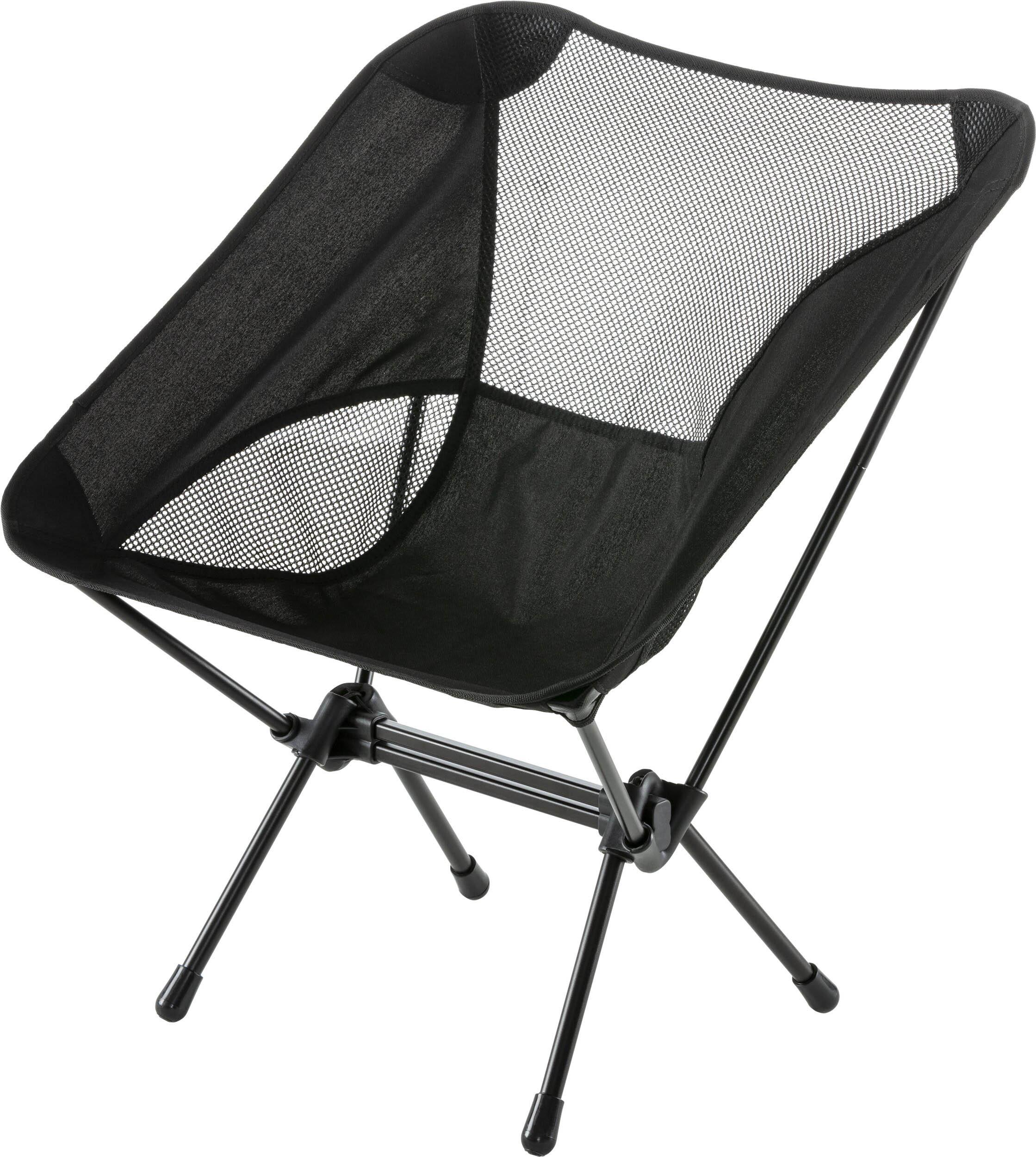 Campingstuhl in sehr leichter, zusammenfaltbarer Konstruktion; robustes Aluminiumgestänge; strapazierfähiger Oxford-Polyester-Bezug; belüftete, niedrige Rückenlehne; inklusive Tragetasche; hält bis zu 120 kg aus.