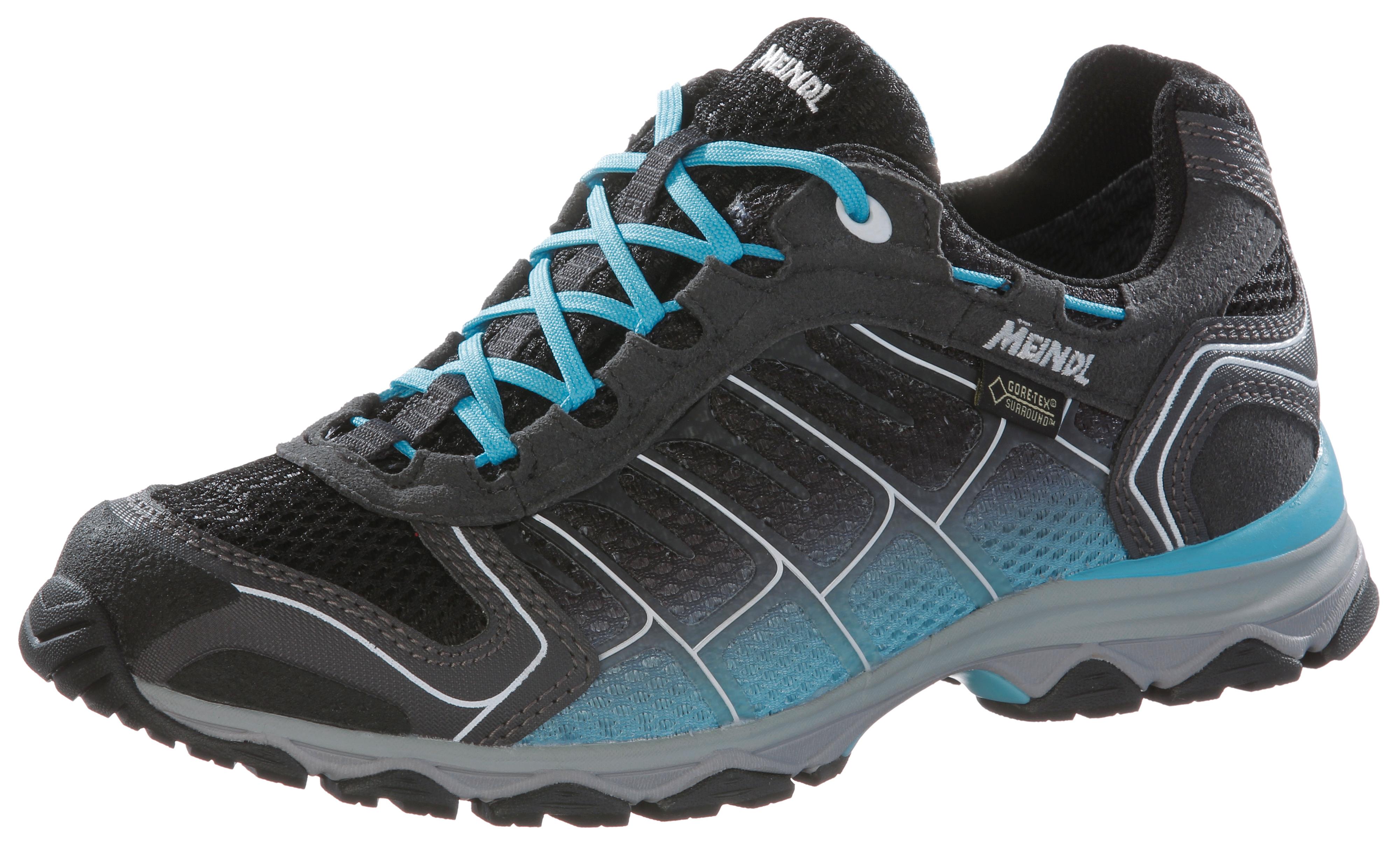 MEINDL X-SO 30 GTX SURROUND™. Leichter und vielseitiger Wanderschuh für Damen, wasserdicht und rundum atmungsaktiv durch GORE-TEX SURROUND™ Technologie, die bei absoluter Wasserdichtigkeit für ein ausgezeichnetes Fußklima durch optimale Belüftung selbst im Sohlenbereich sorgt. Obermaterial robustes Mesh-Gewebe mit stabilisierenden Sythetiküberzügen. Verstärkung an Zehen und Ferse. Anatomisch geformtes und herausnehmbares Air Active® Fußbett; griffig profilierte Meindl Contagrip® Trail Sohle.