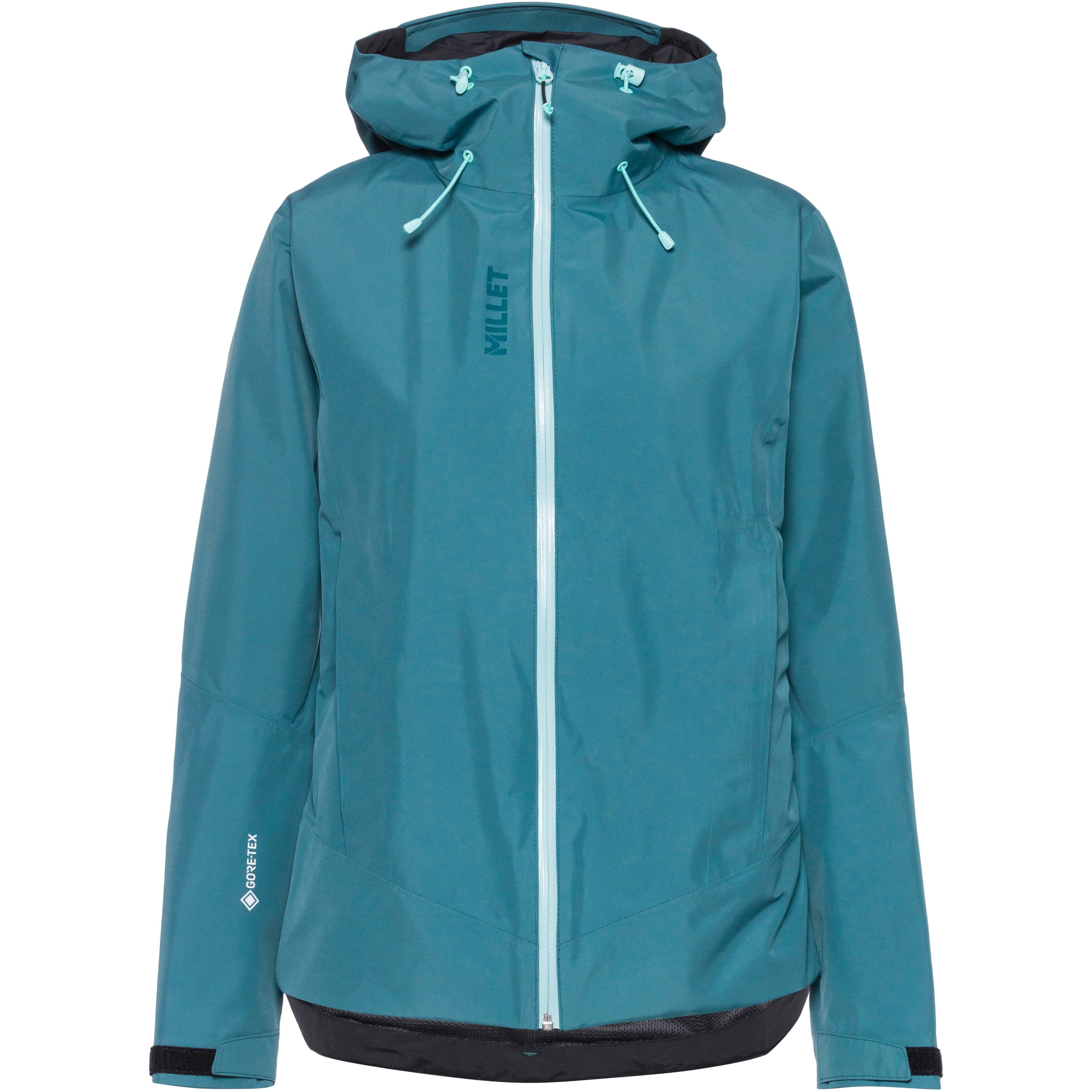 Gefütterte Hardshelljacke in einfarbigem Design; wind- und wasserdicht sowie atmungsaktiv dank GORE-TEX Membran; Kapuze mit verstellbarem Tunnelzug; hochabschließender Kragen mit Kinnschutz; wasserabweisender Reißverschluss; Belüftungsreißverschlüsse unter den Achseln; weitenregulierbare Ärmelabschlüsse mit Klettriegeln; 2 seitliche Eingrifftaschen mit Reißverschluss; 1 Reißverschlusstasche innen; Logodetails; Tunnelzug mit Stopper am Saum; lockere Passform; Wassersäule: 28.000 mm; Gewicht: ca. 441 g; aus Recyclingmaterial hergestellt; Obermaterial 100% Polyester (recycelt), Futter 100% Polyamid.