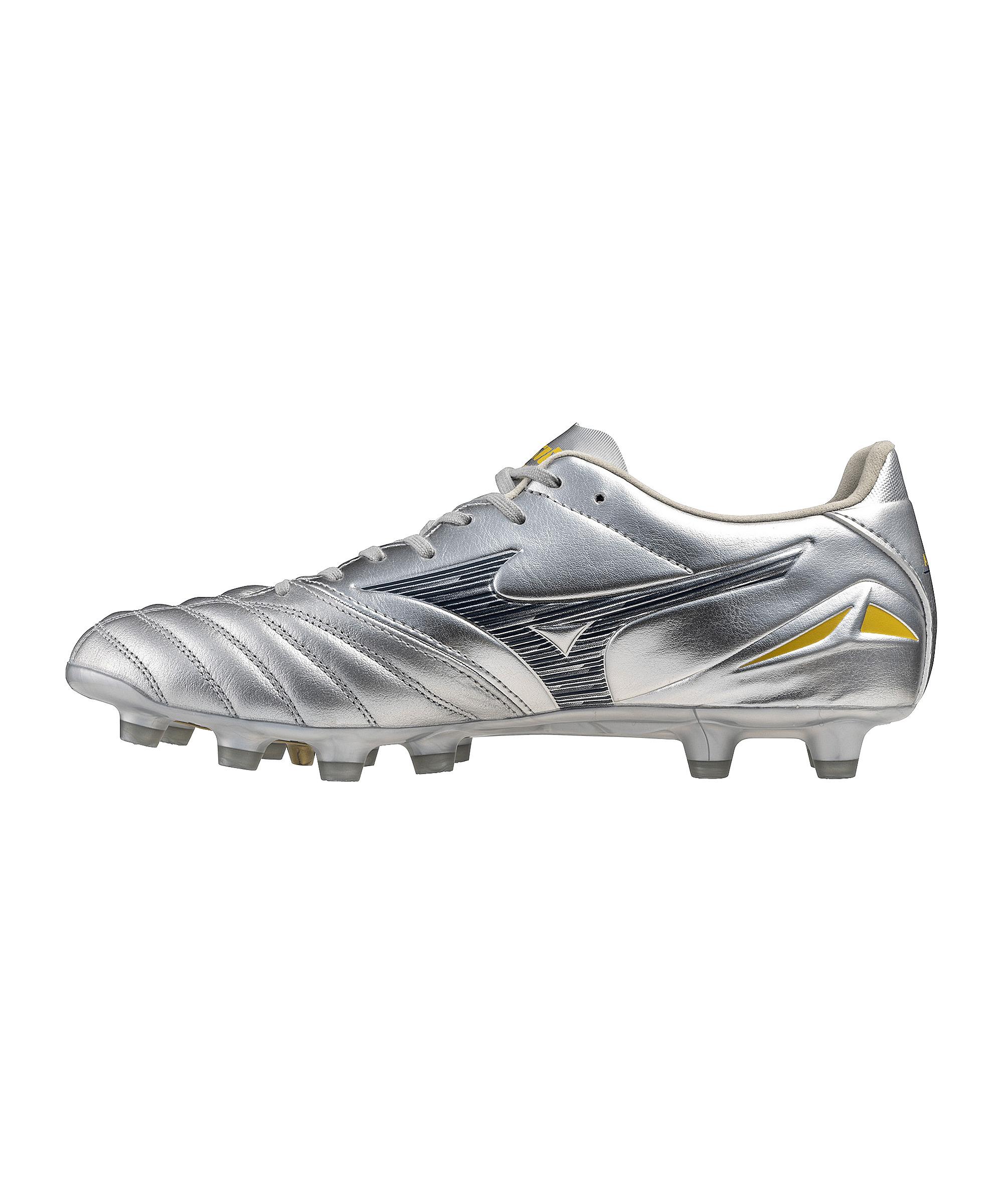 Zieh die Mizuno Morelia Neo IV Pro FG an und erlebe, wie du auf dem Spielfeld förmlich abhebst. Diese Mizuno Nockenschuhe sind dein idealer Begleiter für packende Fußballmatches auf festem Untergrund. Mit ihrem leichten Design und der speziellen Speed-Technologie fühlst du dich schnell und wendig, während die Cushioning-Technologie für ein angenehmes Tragegefühl sorgt. Der individuelle Fit passt sich deinem Fuß perfekt an und die antibakterielle Eigenschaft sorgt für Frische, auch wenn das Spiel hitzig wird. Der exzellente Grip gibt dir die nötige Kontrolle, um deine Gegner auszuspielen. Schnapp dir die Mizuno Morelia Neo IV Pro FG und spüre die Qualität, die Mizuno ausmacht. Du wirst den Unterschied auf dem Platz sofort merken! Produktdetails:Herstellerfarbbezeichnung: MORELIA40thRed/White/BlackHauptfarbe: Rot Obermaterial: Leder, TextilTechnologie: Komfortabel, Dämpfung, Haltbarkeit, Griffigkeit, Leicht, Geschwindigkeit