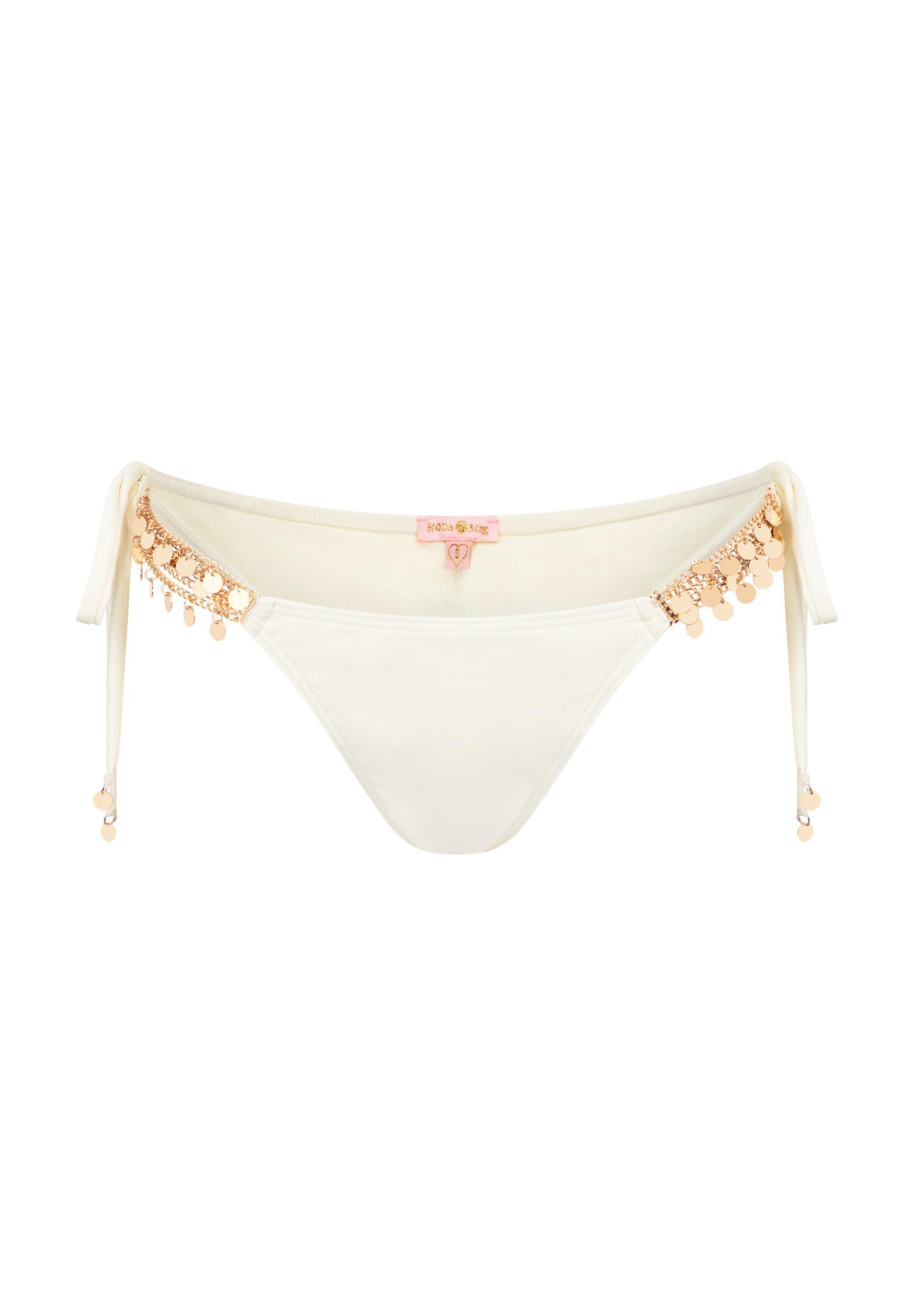 Die super modische Bikinihose 'Alicia Coin' von Moda Minx strahlt mit der Sonne um die Wette! Sie ist ein richtiger Hingucker in der Sommerzeit. Durch den tollen Schnitt, passt sie sich schmeichelnd an den Körper an. Nicht nur perfekt für den Strandurlaub, sondern auch für die Badezeit am See oder Schwimmbad. Um den Look zu vervollständigen, kombinieren Sie das passende Oberteil dazu. Die Bikini-Hose wird an beiden Seiten gebunden.
