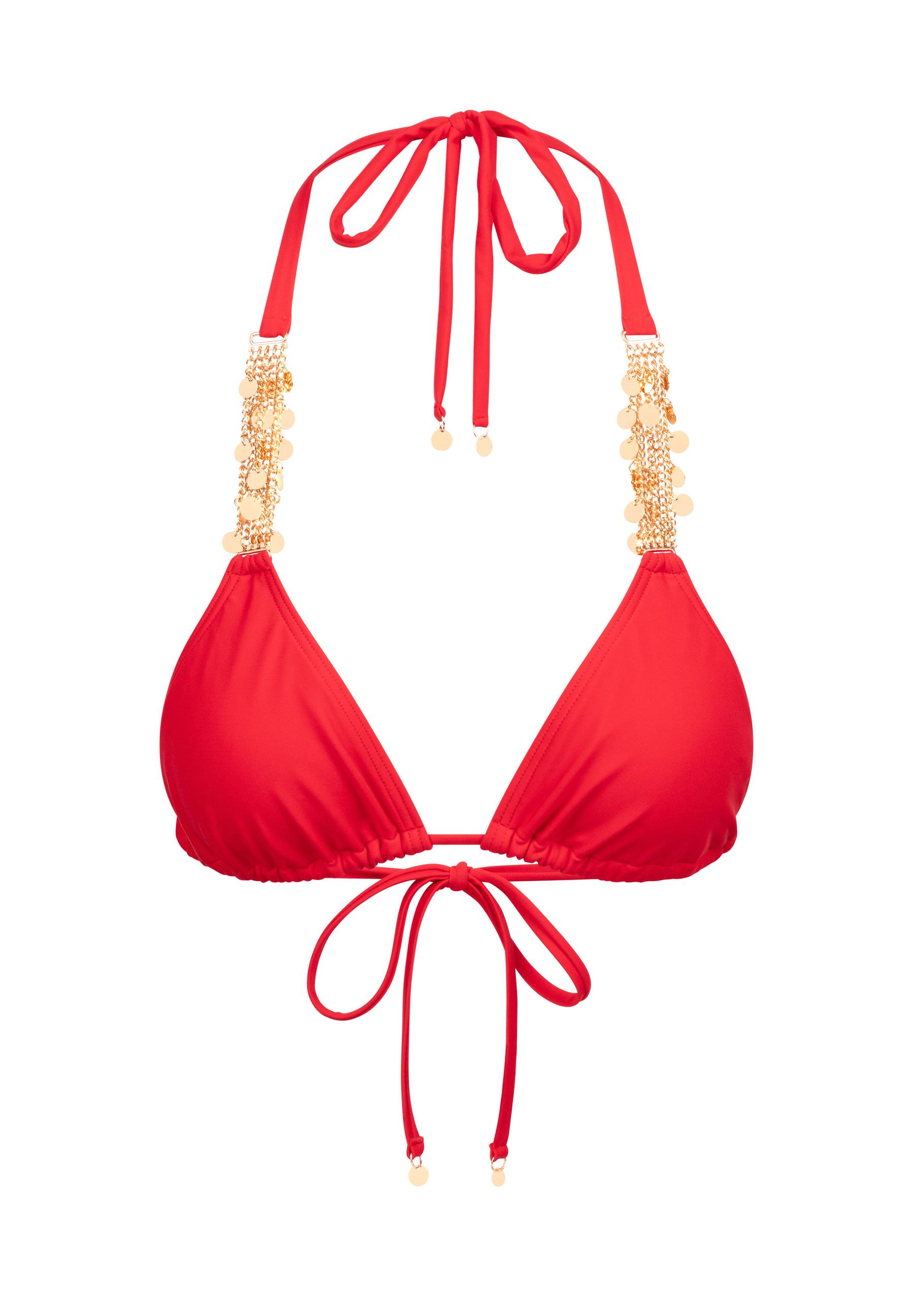 Das super modische Bikini Oberteil 'Alicia Coin' von Moda Minx strahlt mit der Sonne um die Wette! Es ist ein richtiger Hingucker in der Sommerzeit. Durch den tollen Schnitt, passt es sich schmeichelnd an den Körper an. Nicht nur perfekt für den Strandurlaub, sondern auch für die Badezeit am See oder Schwimmbad. Das Bikini-Oberteil wird im Nacken und am Rücken gebunden. Um den Look zu vervollständigen, kombinieren Sie das passende Unterteil dazu.