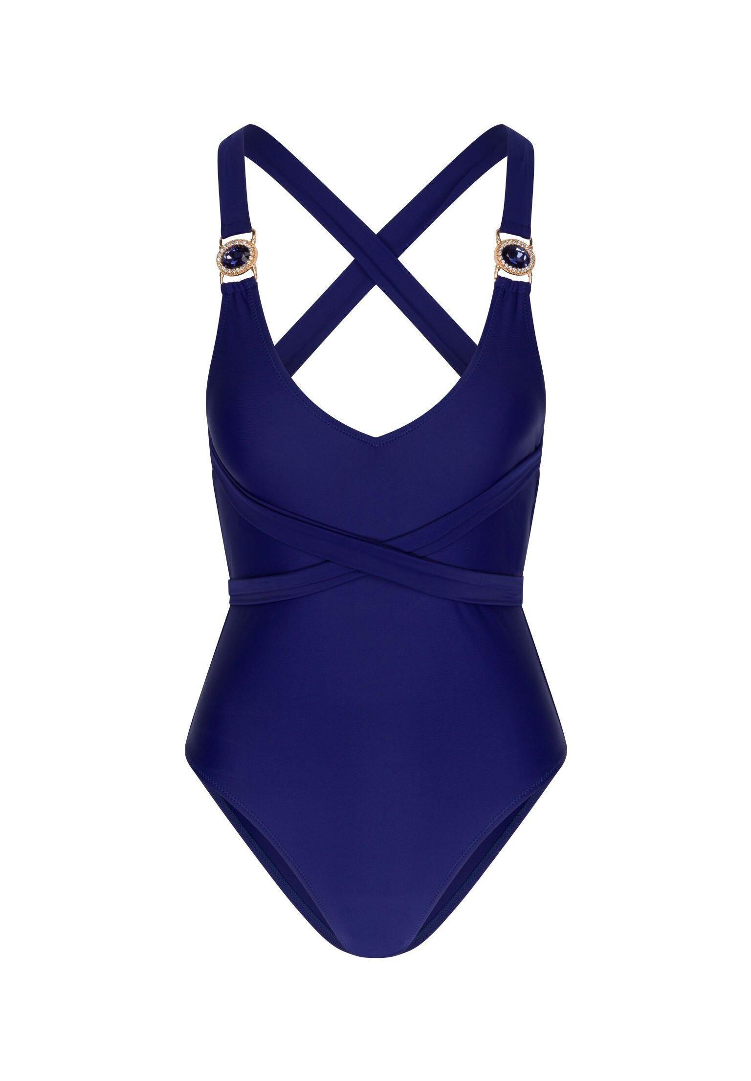 Mit dem modischen Badeanzug von Moda Minx strahlen Sie mit der Sonne um die Wette! Dank der funkelnden Glitzersteine an den Trägern ist er ein richtiger Hingucker in der Sommerzeit. Durch den tollen Schnitt passt er sich schmeichelnd an den Körper an. Nicht nur perfekt für den Strandurlaub, sondern auch für die Badezeit am See oder Schwimmbad.