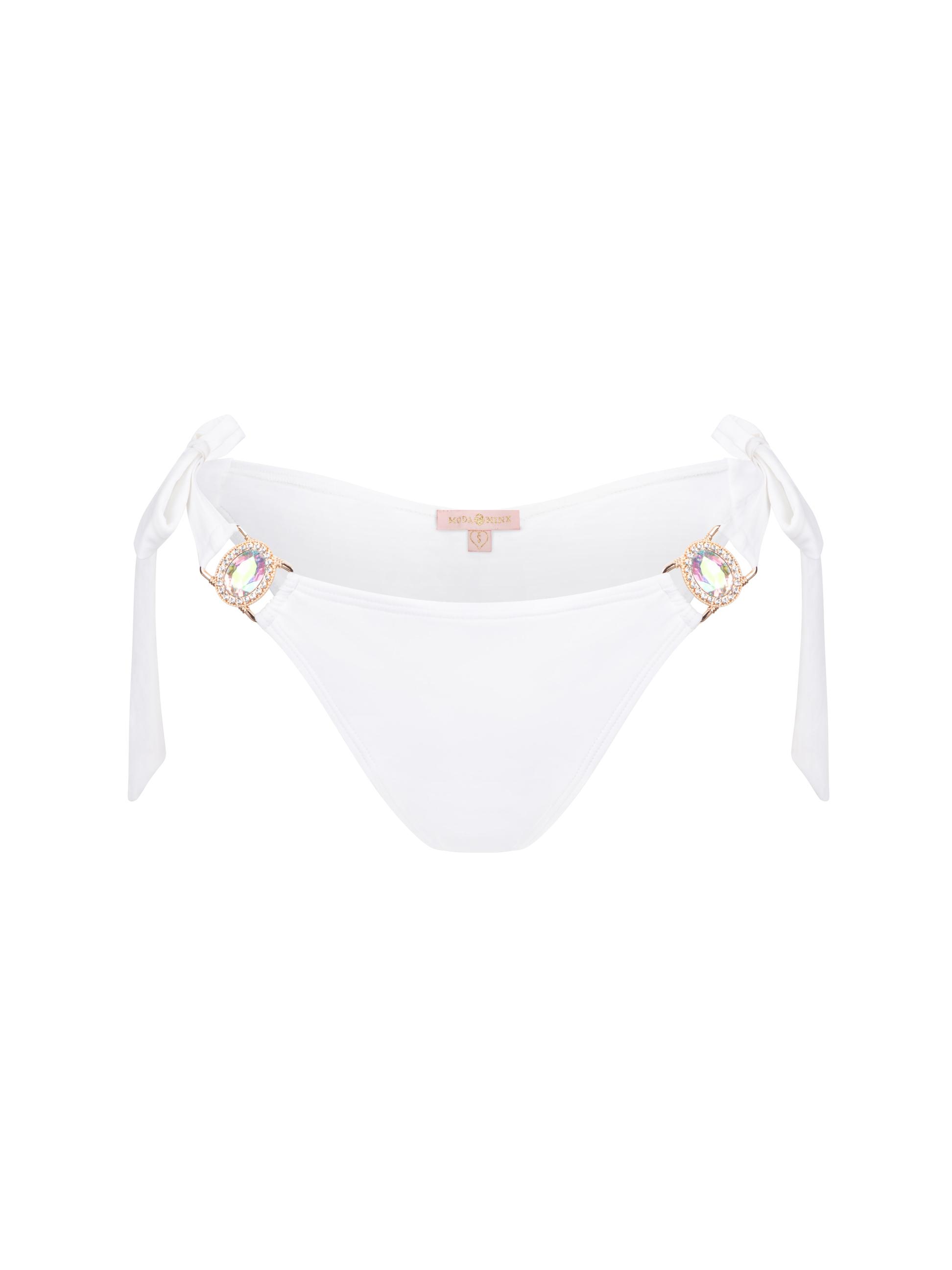 Die super modische Bikinihose von Moda Minx strahlt mit der Sonne um die Wette! Sie ist ein richtiger Hingucker in der Sommerzeit. Durch den tollen Schnitt, passt sie sich schmeichelnd an den Körper an. Nicht nur perfekt für den Strandurlaub, sondern auch für die Badezeit am See oder Schwimmbad. Um den Look zu vervollständigen, kombinieren Sie das passende Oberteil dazu. Die Hose wird seitlich gebunden. Sie kommt im einfarbigen Design und wird durch einen funkelnden Steinbesatz wunderbar aufgepeppt.