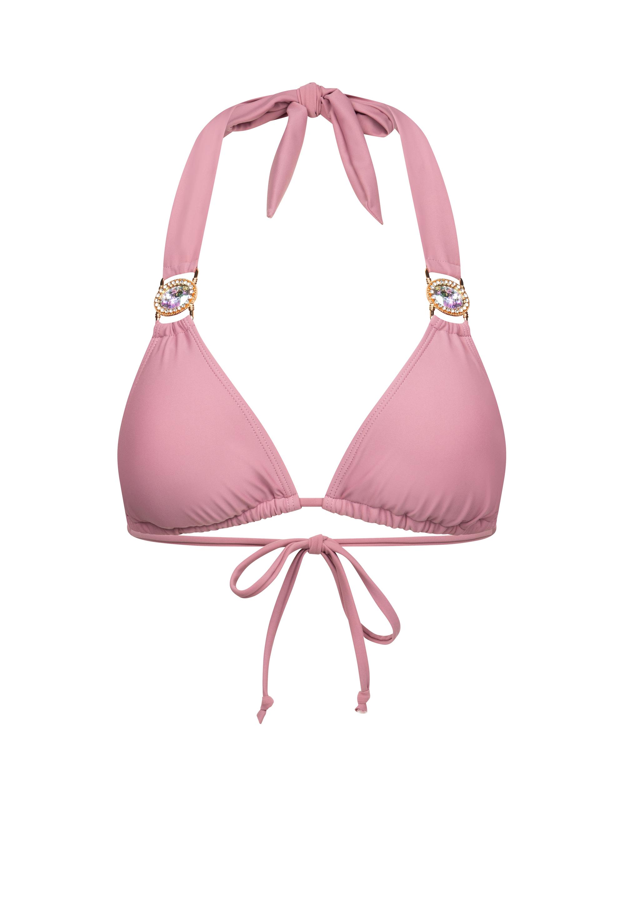 Das Bikinioberteil von Moda Minx in klassischer Triangle-Form überzeugt mit einem stilvollen Steinbesatz, der Ihrem Look eine elegante und funkelnde Note verleiht. Die Bindebänder im Nacken und Rücken sorgen für eine individuelle Passform und sicheren Halt, damit Sie sich jederzeit wohlfühlen. Ob entspannt am Pool oder aktiv am Strand – dieses Oberteil ist das perfekte Must-have für stilbewusste Sonnenanbeterinnen, die Wert auf Komfort und modisches Design legen.