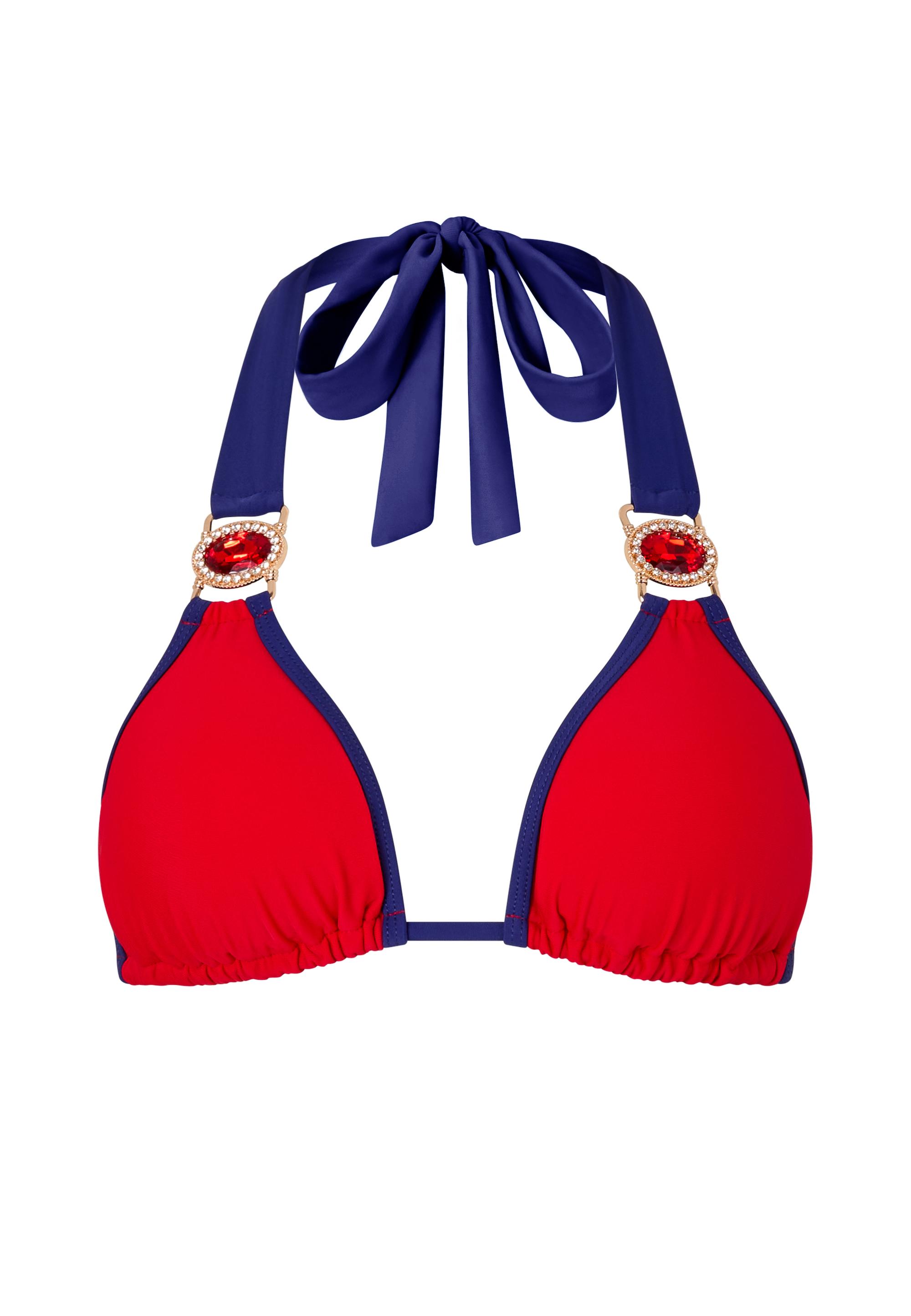 Das Bikinioberteil von Moda Minx vereint die klassische Triangle-Form mit einem modernen Kontrast-Design und setzt stilvolle Akzente am Strand oder Pool. Der elegante Steinbesatz verleiht dem Look einen Hauch Glamour, während die Nackenbänder individuell gebunden werden können – für eine passgenaue und bequeme Passform. Ob Sie entspannt am Pool relaxen oder aktiv im Meer baden – mit diesem Oberteil sehen Sie nicht nur fantastisch aus, sondern fühlen sich auch rundum wohl.