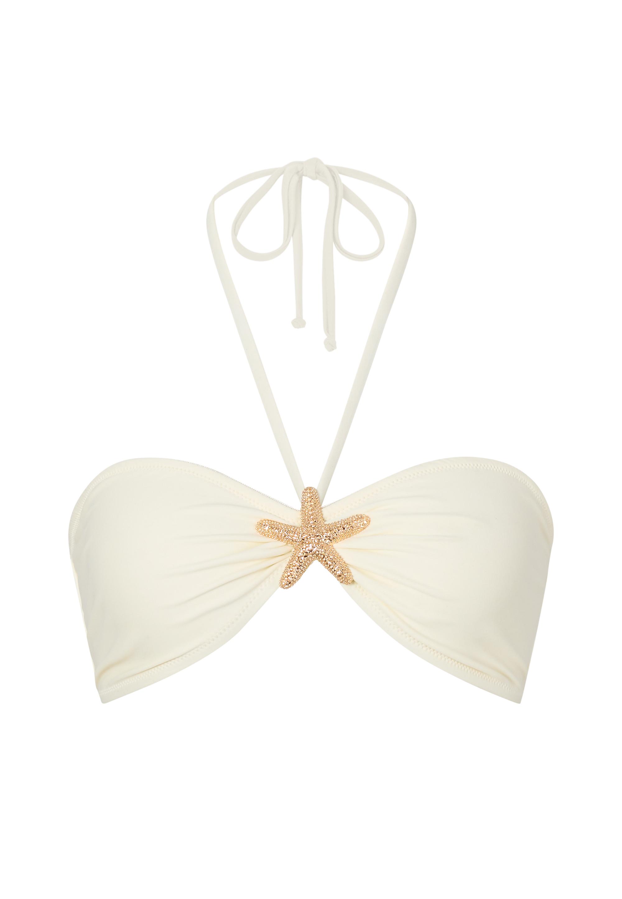 Dieses Bikinioberteil von Moda Minx im Bandeau-Stil mit Neckholder vereint femininen Charme mit sommerlichem Glamour. Das auffällige Seestern-Element sorgt für einen besonderen Blickfang und unterstreicht den maritimen Look. Egal ob Sie entspannt am Pool liegen oder aktiv am Strand unterwegs sind – in diesem Oberteil sehen Sie nicht nur fantastisch aus, sondern fühlen sich auch so. Ein stylisches Must-have, das garantiert alle Blicke auf sich zieht!