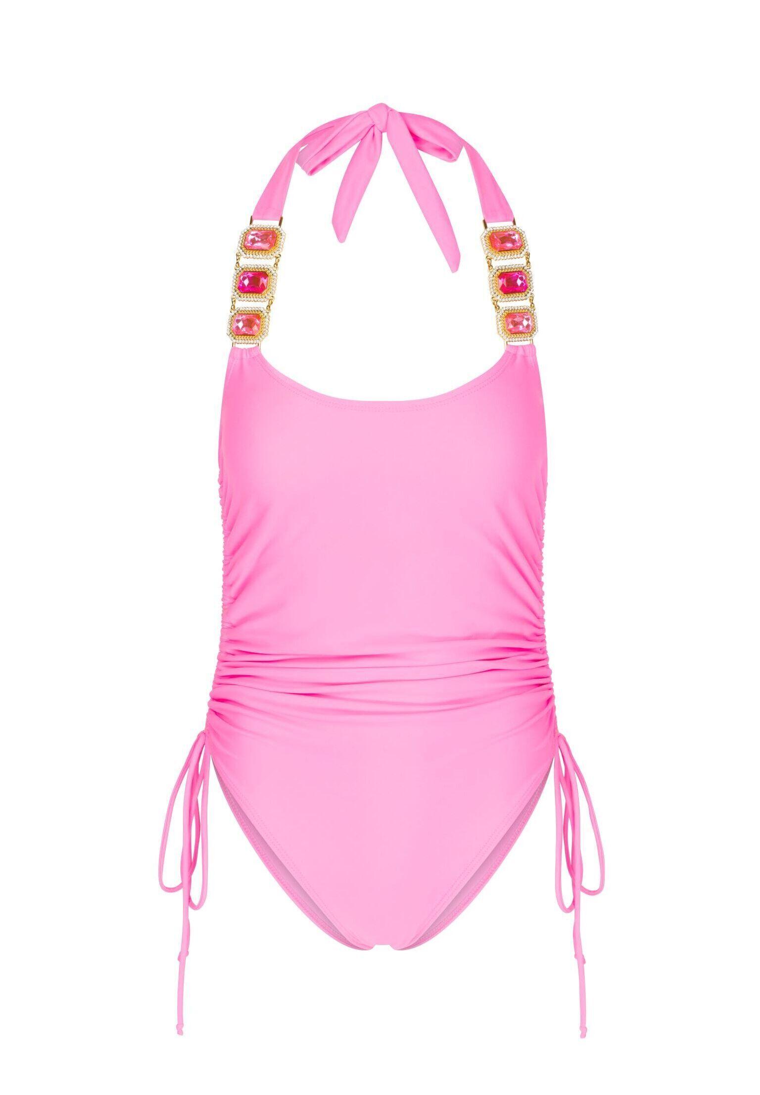 Mit dem modischen Badeanzug „Boujee“ von Moda Minx strahlen Sie garantiert mit der Sonne um die Wette. Sein gelungener Schnitt schmiegt sich schmeichelnd an Ihre Silhouette und sorgt für einen perfekten Sitz. Der Badeanzug wird am Rücken gebunden und lässt sich an den Seiten mit praktischen Bändern raffbar anpassen – für optimalen Komfort und eine individuelle Passform. Ob am Strand, am See oder im Schwimmbad - dieser Hingucker ist die ideale Wahl für stilbewusste Sonnenliebhaberinnen.
