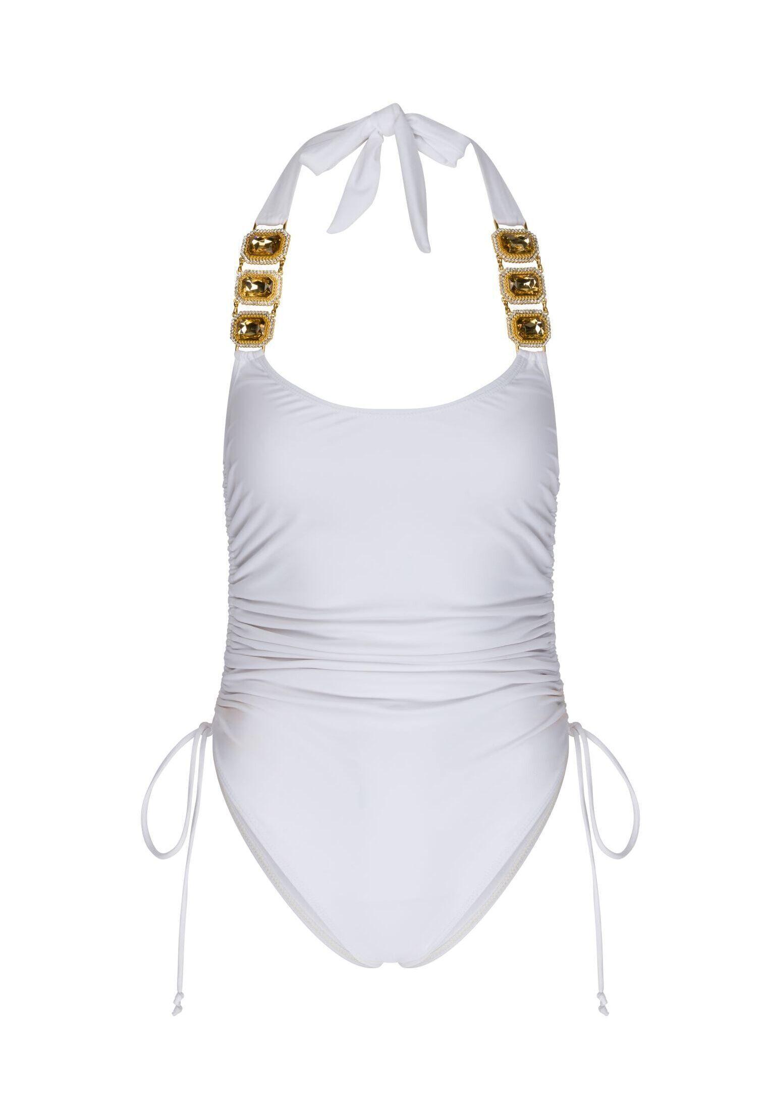 Mit dem modischen Badeanzug „Boujee“ von Moda Minx strahlen Sie garantiert mit der Sonne um die Wette. Sein gelungener Schnitt schmiegt sich schmeichelnd an Ihre Silhouette und sorgt für einen perfekten Sitz. Der Badeanzug wird am Rücken gebunden und lässt sich an den Seiten mit praktischen Bändern raffbar anpassen – für optimalen Komfort und eine individuelle Passform. Ob am Strand, am See oder im Schwimmbad - dieser Hingucker ist die ideale Wahl für stilbewusste Sonnenliebhaberinnen.