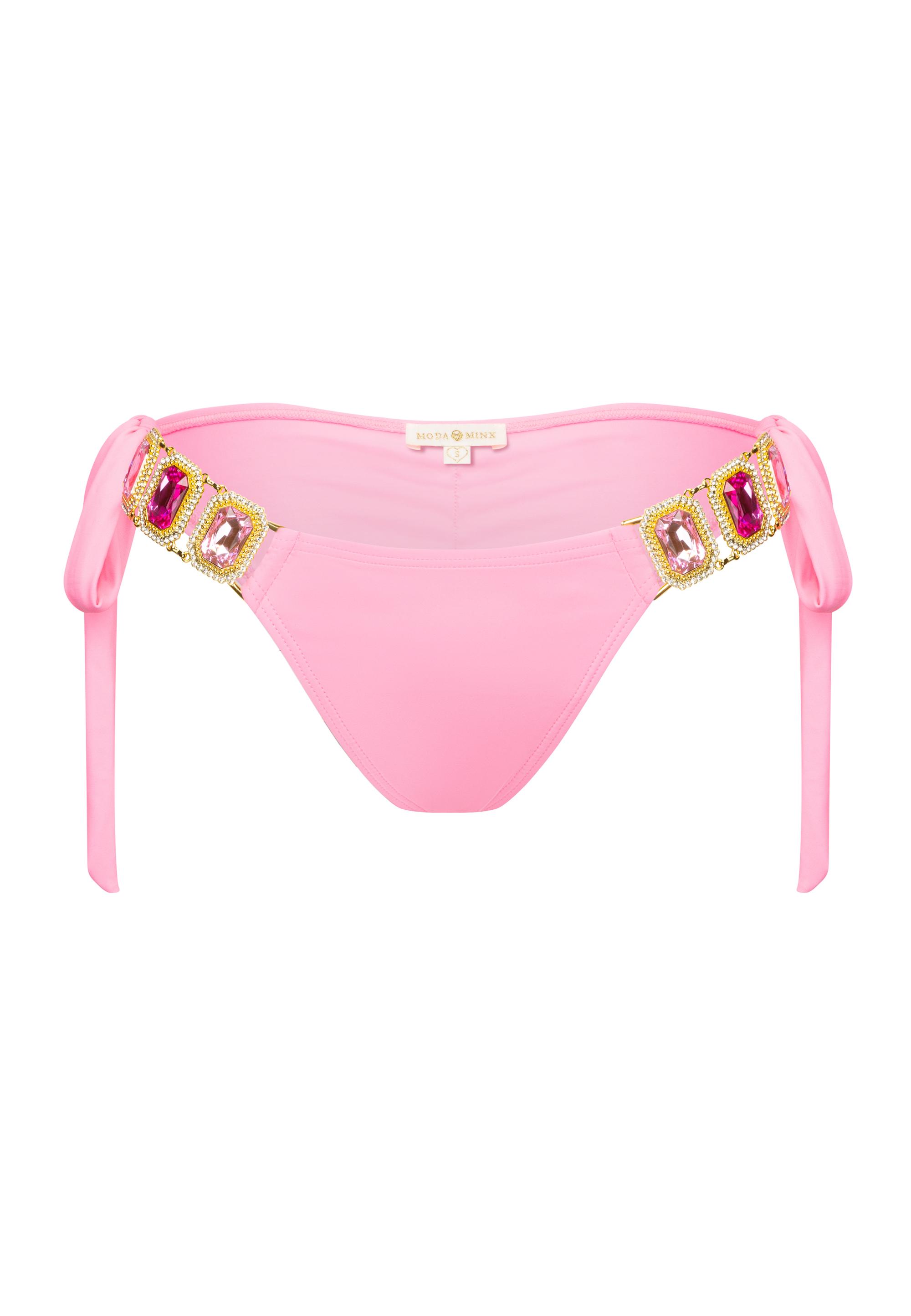 Die Bikinihose von Moda Minx besticht durch ihren verführerischen Brazilian-Schnitt und die seitlichen Bindebänder, die eine individuelle Passform und einen optimalen Sitz ermöglichen. Ein besonderes Highlight sind die feinen, edlen Schmuckelemente, die dezent an den Seiten angebracht sind und dem Design eine luxuriöse, feminine Note verleihen. Dank des bequemen Materials eignet sich die Hose perfekt zum Entspannen am Pool oder für aktive Stunden im Wasser. Ideal für Sonnenliebhaberinnen, die Wert auf modische Details und hohen Tragekomfort legen.