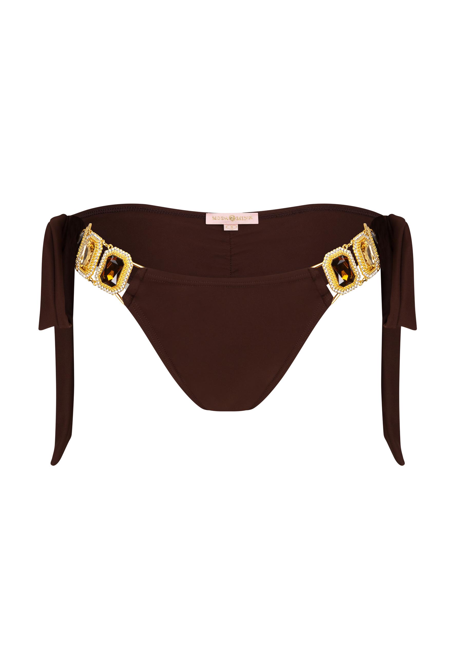 Moda MinxBoujee Tie Side Brazilian Bikini Bottom - Bikini Hose Damen - Coffee
