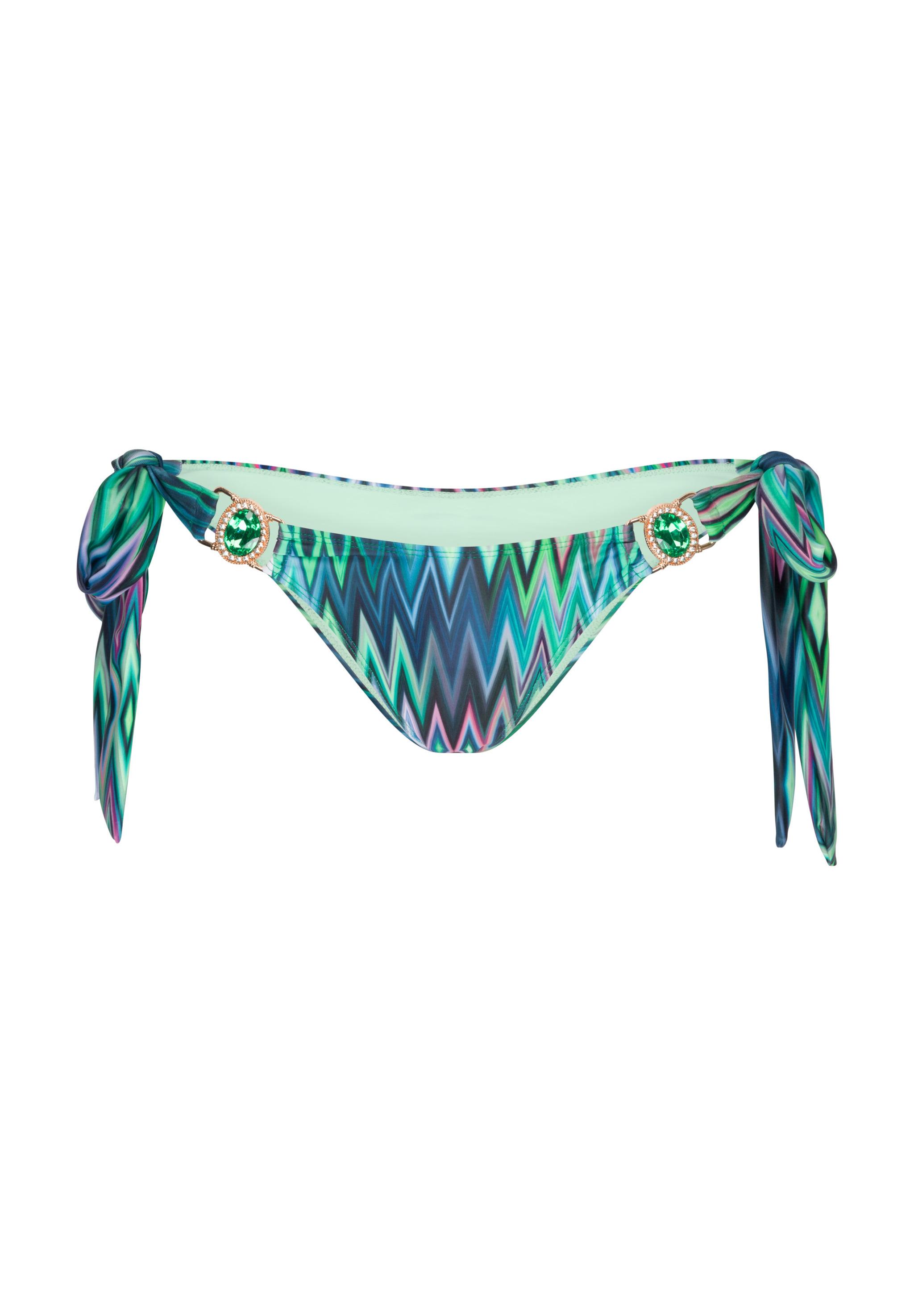 Die super modische Bikinihose von Moda Minx strahlt mit der Sonne um die Wette! Sie ist ein richtiger Hingucker in der Sommerzeit. Durch den tollen Schnitt passt sie sich schmeichelnd an den Körper an. Nicht nur perfekt für den Strandurlaub, sondern auch für die Badezeit am See oder Schwimmbad. Um den Look zu vervollständigen, kombinieren Sie das passende Oberteil dazu. Die Hose zeigt sich in einem farbenfrohen Zick-Zack-Muster und wird an der Seite gebunden. Glitzernde Steinchen an den Seiten fügen sich perfekt in das Design ein und funkeln formschön im Licht.