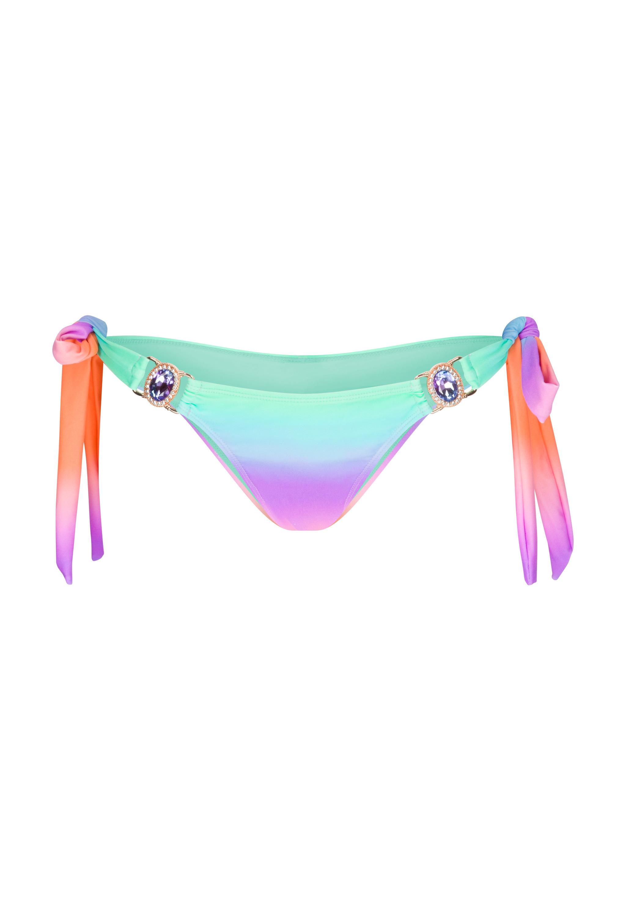 Die super modische Bikinihose von Moda Minx strahlt mit der Sonne um die Wette! Sie ist ein richtiger Hingucker in der Sommerzeit. Durch den tollen Schnitt passt sie sich schmeichelnd an den Körper an. Nicht nur perfekt für den Strandurlaub, sondern auch für die Badezeit am See oder Schwimmbad. Um den Look zu vervollständigen, kombinieren Sie das passende Oberteil dazu. Die Hose ist ein toller Hingucker, der vor allem mit seinem Farbverlauf und dem funkelnden Steinbesatz am Bund begeistert. Gebunden wird sie an der Seite.