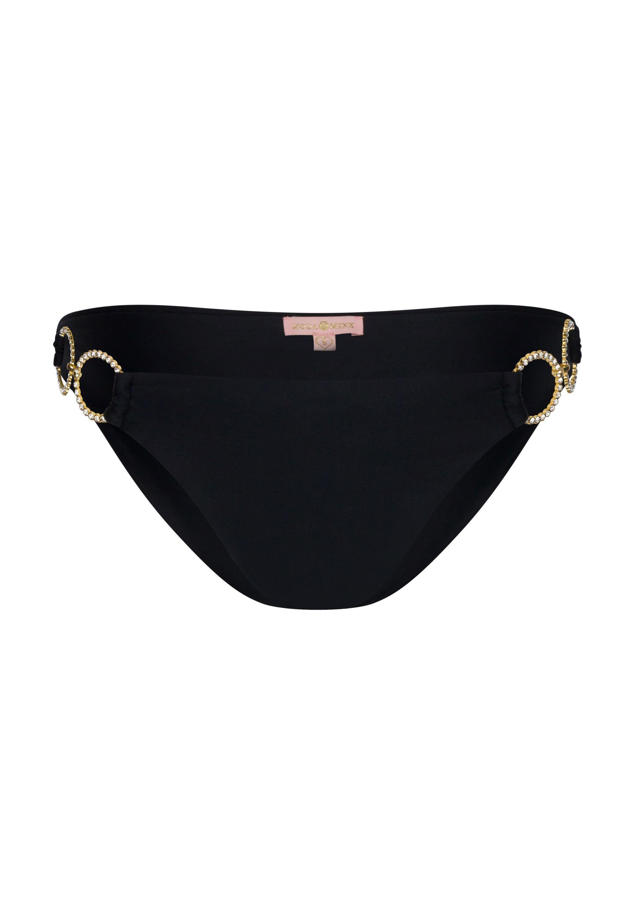 Die super modische Bikini-Hose von Moda Minx strahlt mit der Sonne um die Wette! Durch die wunderschönen, mit kleinen Steinen besetzten Ringe ist dieses Modell ein echter Hingucker in der Sommerzeit. Abgerundet wird die tolle Optik durch eine tolle Passform, wodurch sich die Hose schmeichelnd an den Körper anpasst. Somit ist sie nicht nur perfekt für den Strandurlaub, sondern auch für die Badezeit am See oder im Schwimmbad geeignet.