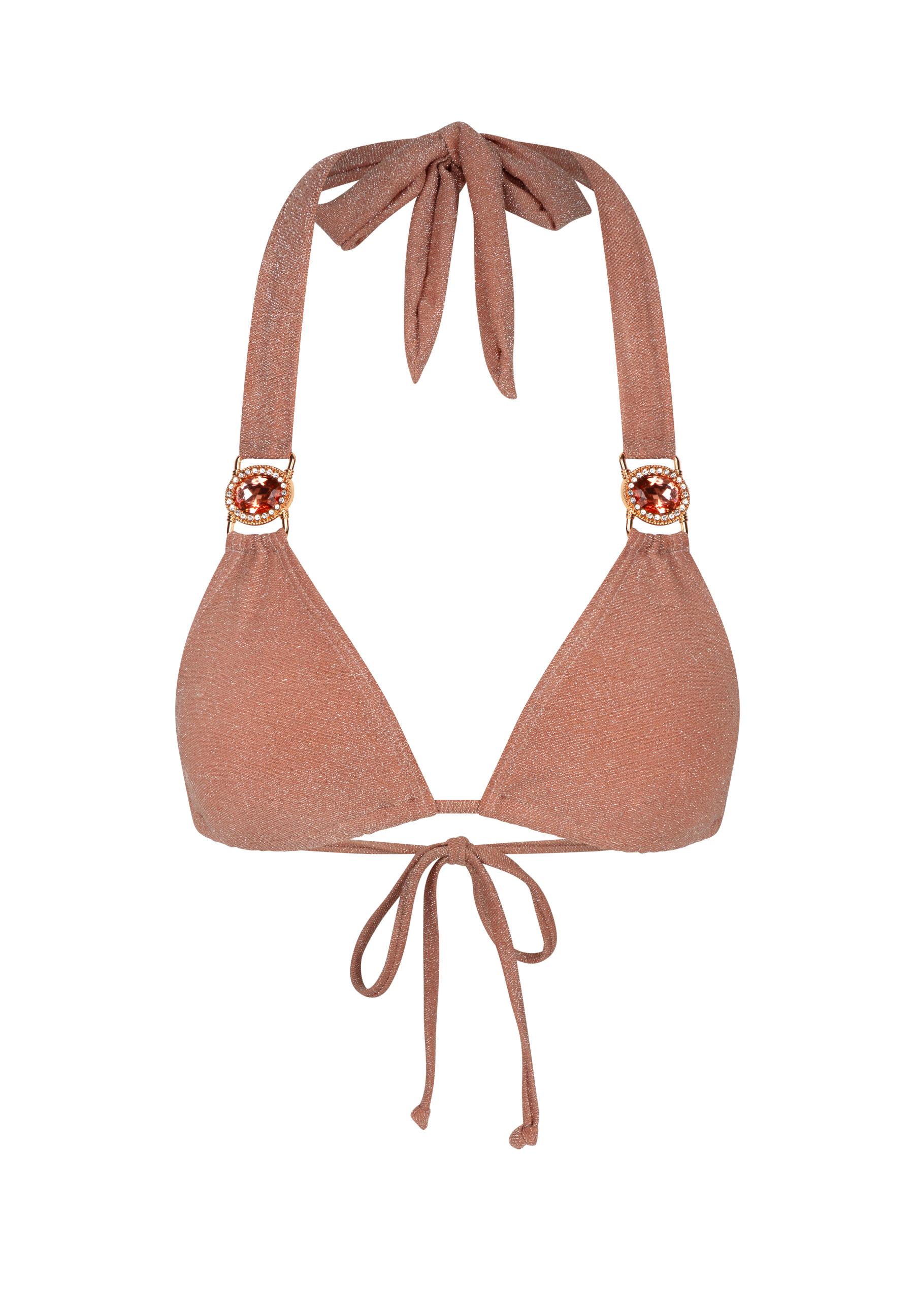 Das super modische Bikini-Oberteil von Moda Minx strahlt mit der Sonne um die Wette! Durch den stilvollen Steinbesatz an beiden Trägern ist es ein richtiger Hingucker in der Sommerzeit. Außerdem schmiegt sich das Bikinitop durch den tollen Schnitt schmeichelnd an den Körper an. Damit ist es nicht nur perfekt für den Strandurlaub, sondern auch für die Badesaison am See oder im Schwimmbad geeignet. Um den Look gekonnt abzurunden, kombinieren Sie das passende Unterteil dazu.