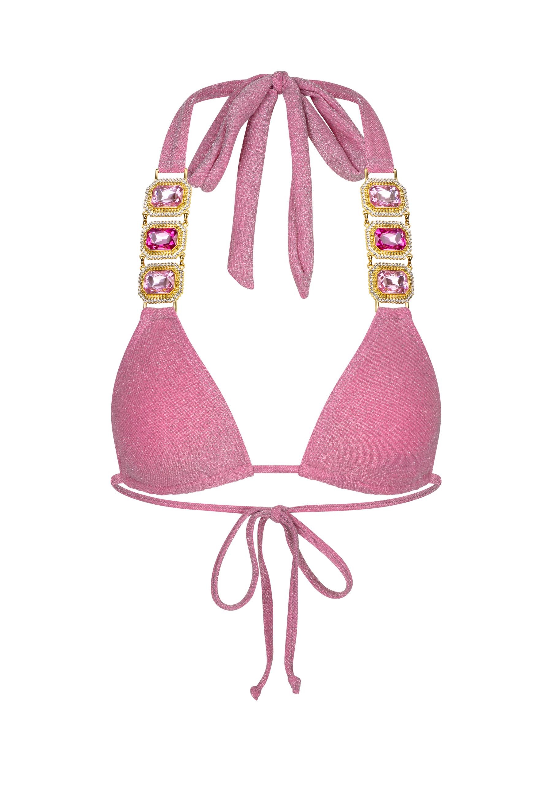 Das super modische Bikini-Oberteil von Moda Minx strahlt mit der Sonne um die Wette! Es ist ein richtiger Hingucker in der Sommerzeit. Durch den tollen Schnitt passt es sich schmeichelnd an den Körper an. Nicht nur perfekt für den Strandurlaub, sondern auch für die Badezeit am See oder Schwimmbad. Das Modell kommt in einem eleganten Design und wird durch große Glitzersteine an den Trägern zum Highlight. Um den Look zu vervollständigen, kombinieren Sie das passende Unterteil dazu.