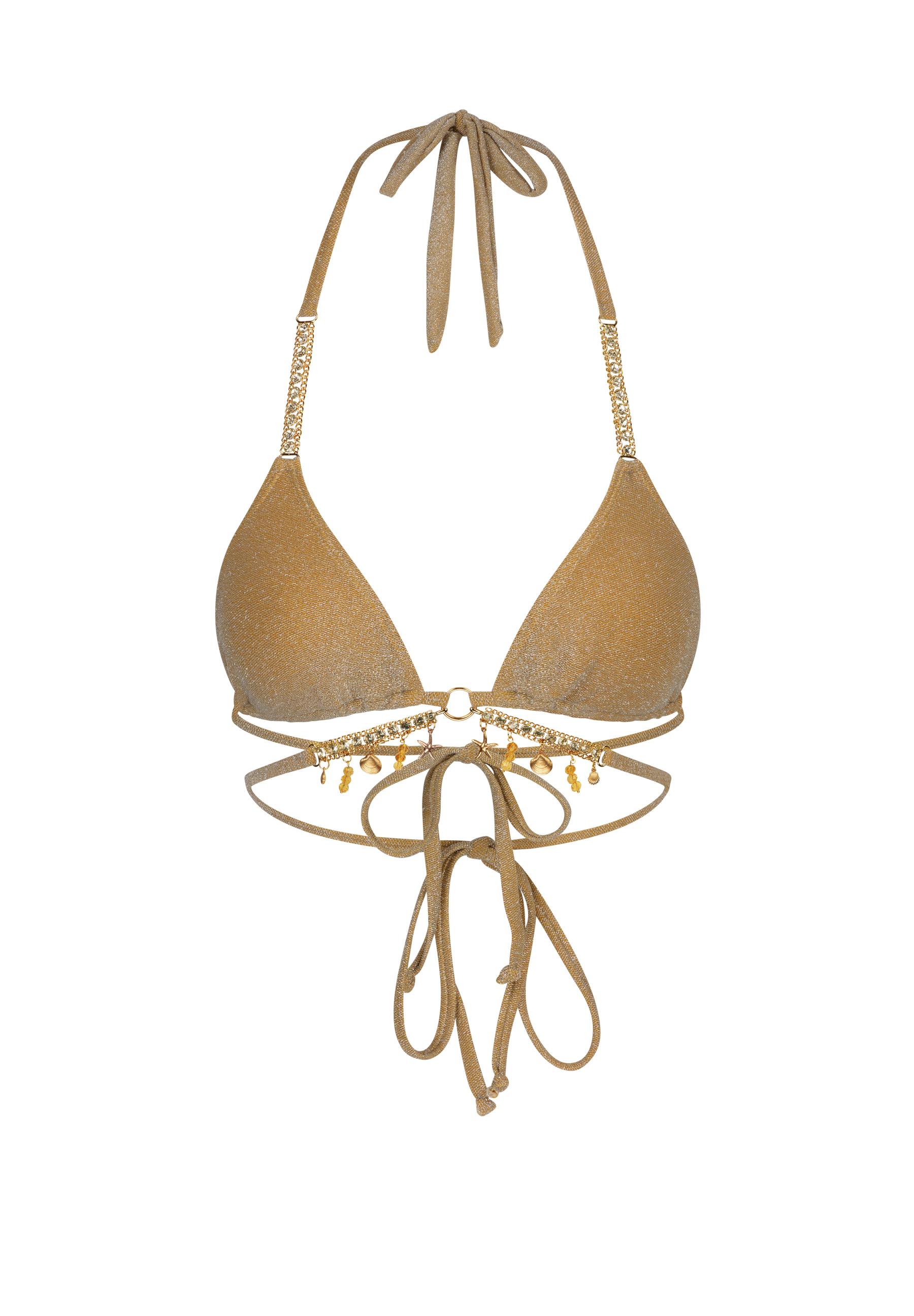 Das super modische Bikinioberteil 'Lumiere Seychelles' von Moda Minx strahlt mit der Sonne um die Wette! Es ist ein echter Hingucker für die Sommersaison. Durch den tollen Schnitt schmiegt es sich schmeichelnd an den Körper an. Nicht nur für den Strandurlaub perfekt, sondern auch für die Badesaison am See oder im Schwimmbad. Um den Look zu vervollständigen, kombinieren Sie das passende Unterteil dazu. Das Bikini-Oberteil wird im Nacken und am Rücken gebunden.