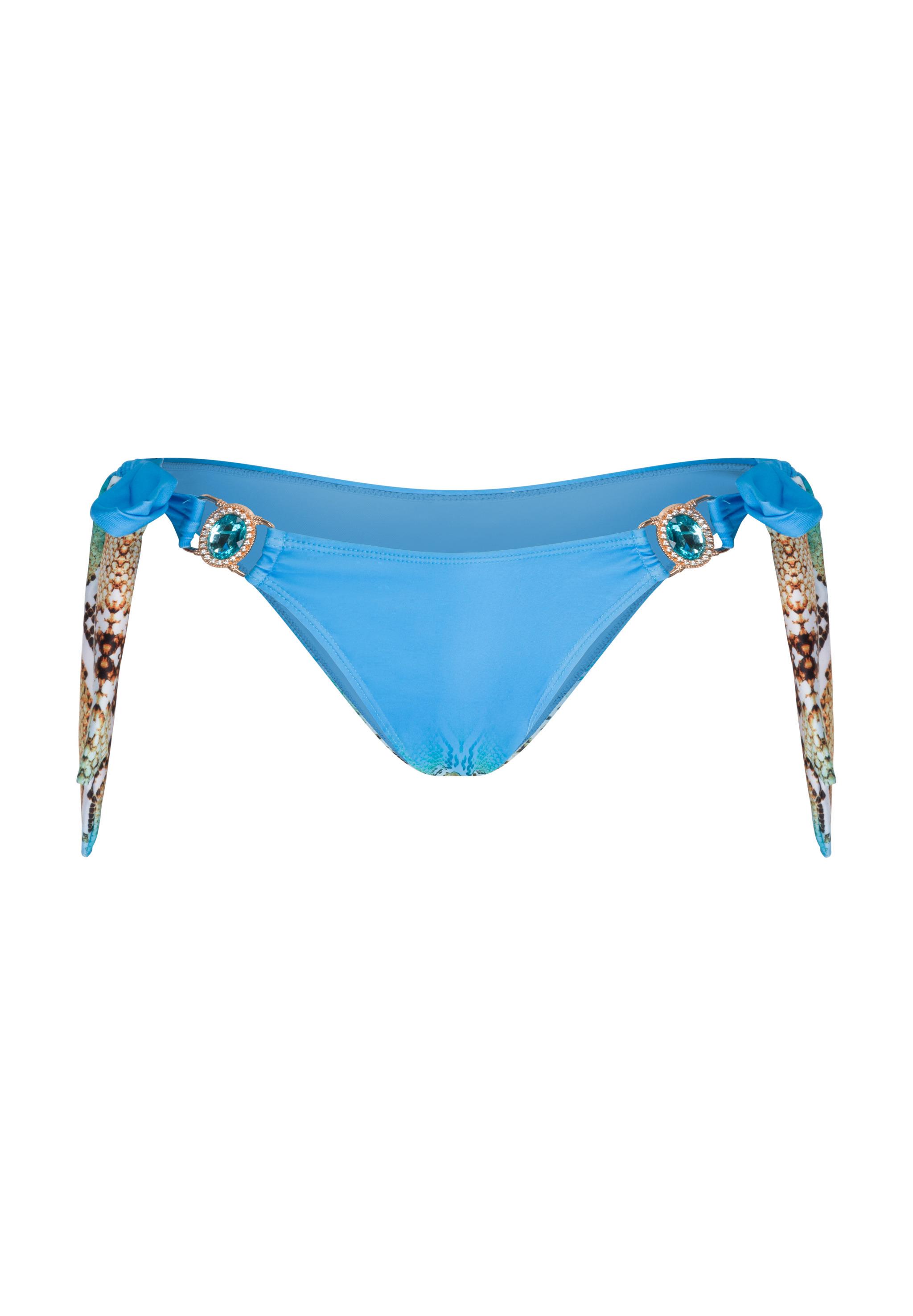 Die super modische Bikinihose von Moda Minx strahlt mit der Sonne um die Wette! Sie ist ein echter Hingucker im Sommer. Durch den tollen Schnitt schmeichelt sie dem Körper. Perfekt nicht nur für den Strandurlaub, sondern auch für die Badesaison am See oder im Schwimmbad. Das passende Oberteil macht den Look perfekt. Die Hose ist auf der Rückseite und an den Bändern sommerlich gemustert. Sie wird seitlich gebunden und ist durch den tollen Steinbesatz vorne ein echter Hingucker.
