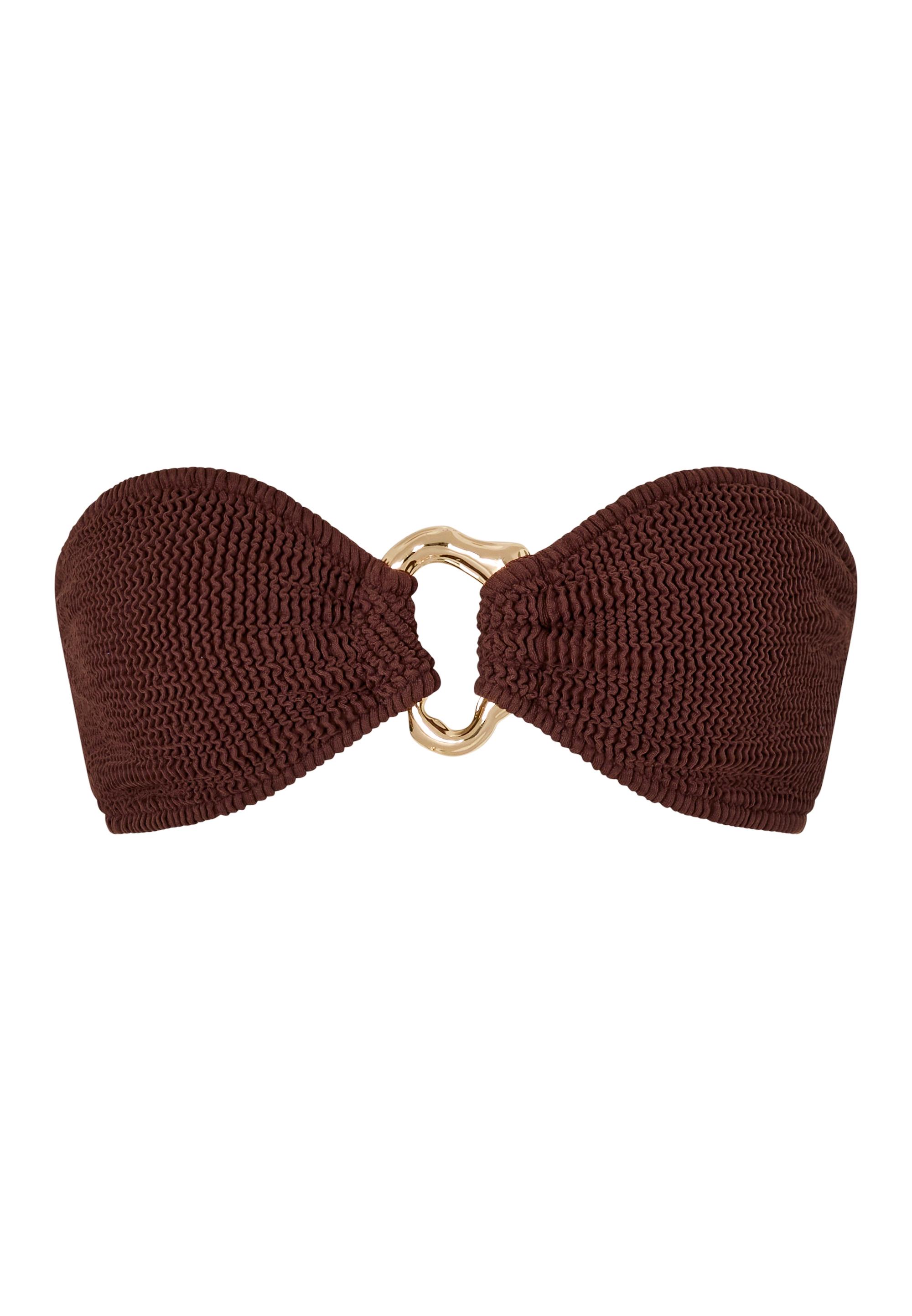Das Bikinioberteil von Moda Minx im eleganten Bandeau-Stil besticht durch ein auffälliges Schmuckelement, das mittig angebracht ist und dem Design eine glamouröse Note verleiht. Gefertigt aus hochwertigem, strukturiertem Scrunch-Material, dessen fein geraffte Oberfläche nicht nur für eine moderne Optik sorgt, sondern sich auch sanft an die Haut anschmiegt und die Silhouette vorteilhaft betont. Ob beim entspannten Sonnenbaden am Pool oder am Strand – dieses Oberteil ist die perfekte Wahl für stilbewusste Sonnenliebhaberinnen, die Komfort und Eleganz suchen.