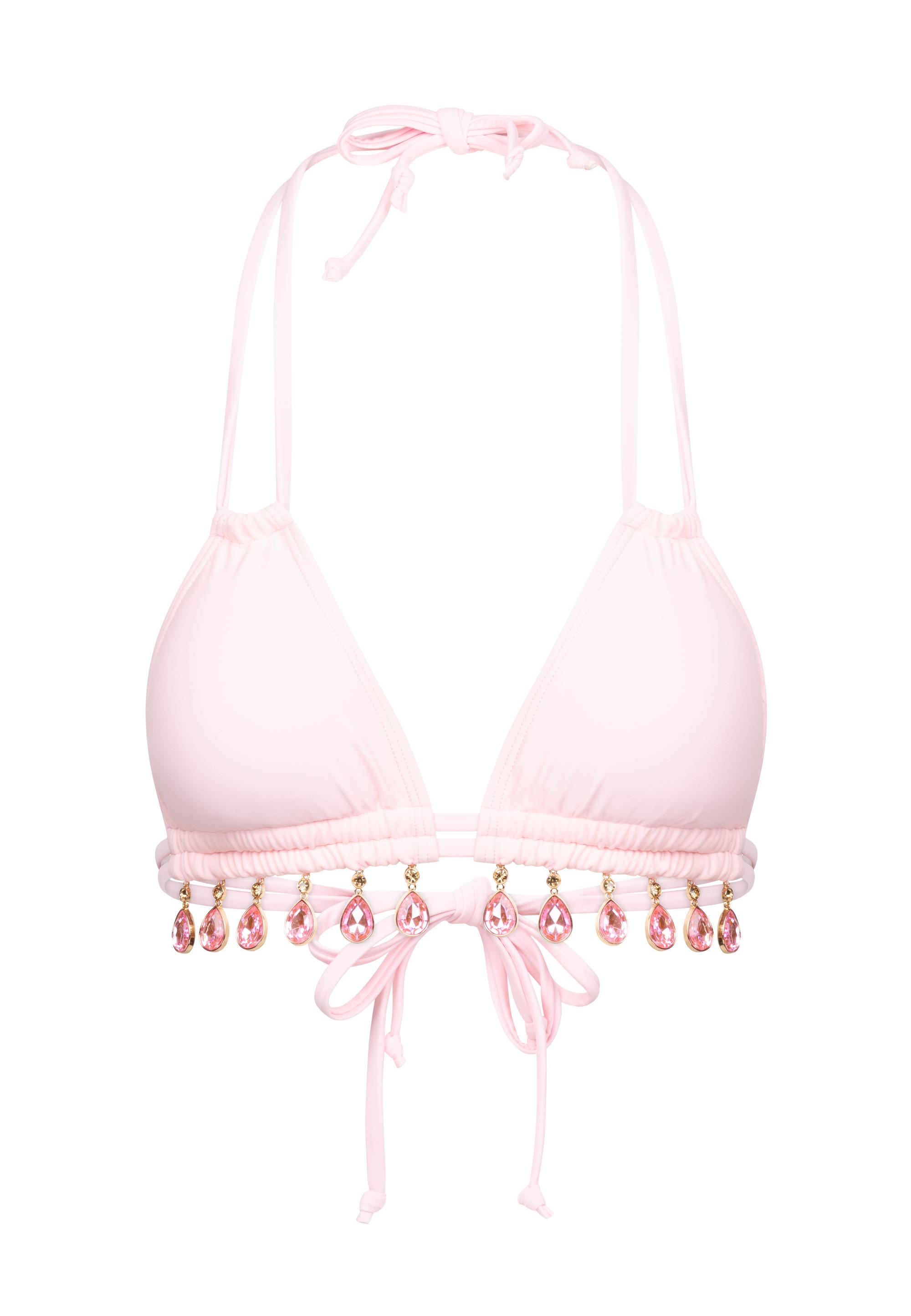 Das Bikinioberteil von Moda Minx vereint sommerliche Leichtigkeit mit modernem Design. In klassischer Triangle-Form schmiegt es sich dank Bindebändern im Nacken und Rücken flexibel an die Figur an. Ein besonderes Highlight sind die eleganten Schmuckelemente unter der Brust – echte Blickfänger, die dem Look eine exklusive Note verleihen. Das raffinierte Double-Strap-Design sorgt nicht nur für einen zeitgemäßen Look, sondern auch für besonders guten Halt: Zwei schmale Träger verlaufen parallel und verleihen dem Oberteil eine stilvolle, feminine Optik mit zusätzlicher Stabilität. Ob beim Sonnenbaden am Strand oder beim Relaxen am Pool – dieses Oberteil ist der perfekte Begleiter für Sonnenliebhaberinnen, die Wert auf Stil und Komfort legen.