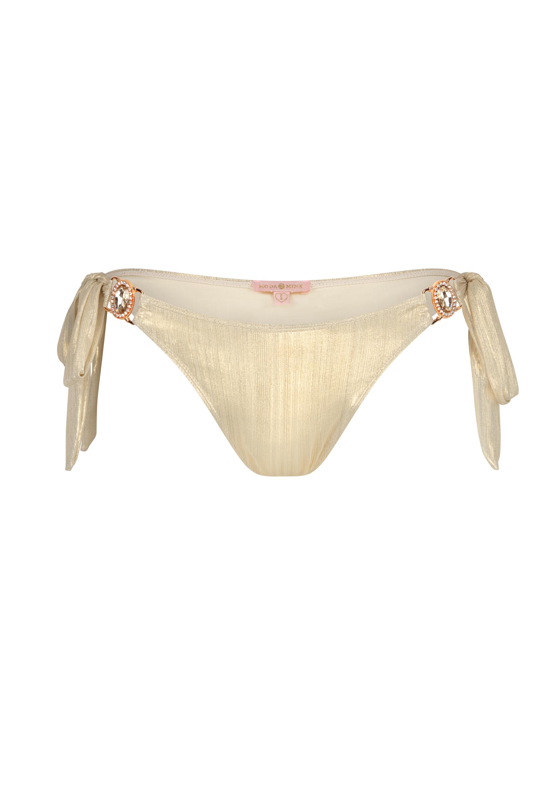 Die super modische Bikinihose von Moda Minx strahlt mit der Sonne um die Wette! Sie ist ein richtiger Hingucker in der Sommerzeit. Durch den tollen Schnitt passt sie sich schmeichelnd an den Körper an. Nicht nur perfekt für den Strandurlaub, sondern auch für die Badezeit am See oder Schwimmbad. Die Hose kommt in einem glänzden Design und wird durch glitzernde Steinchen zusätzlich aufgepeppt. Um den Look zu vervollständigen, kombinieren Sie das passende Oberteil dazu.