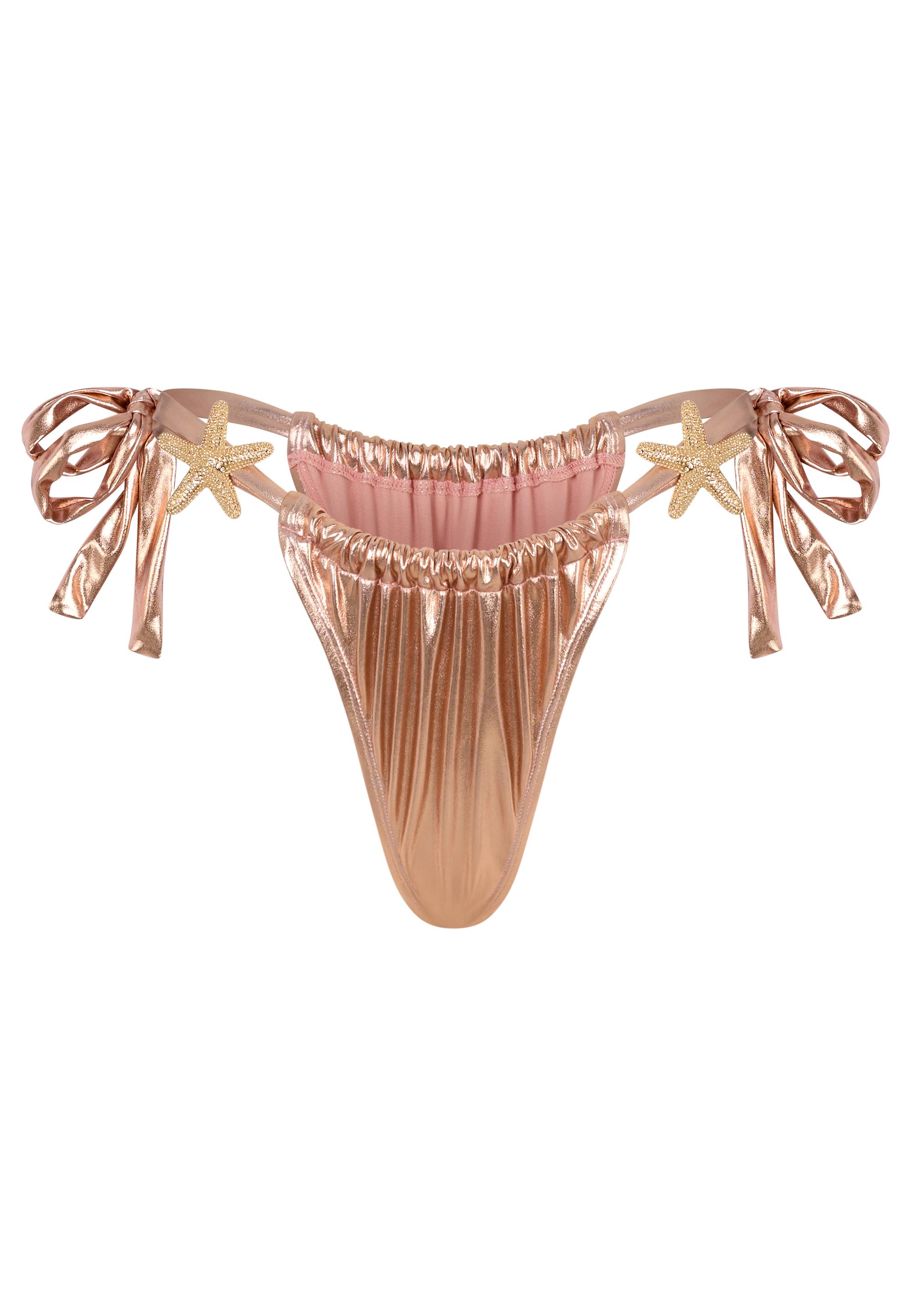 Die Bikinihose von Moda Minx vereint maritimen Charme mit modernem Metallic-Look und wird dank der zwei stilvollen Seestern-Elemente zum echten Hingucker. Die seitlichen Bindebänder sorgen für eine individuelle Passform und setzen feminine Akzente. Ob Sie entspannt am Pool relaxen oder aktiv am Strand sind – mit dieser Bikinihose sehen Sie nicht nur fantastisch aus, sondern fühlen sich auch rundum wohl. Ideal für alle, die modische Bademode mit besonderen Details lieben.