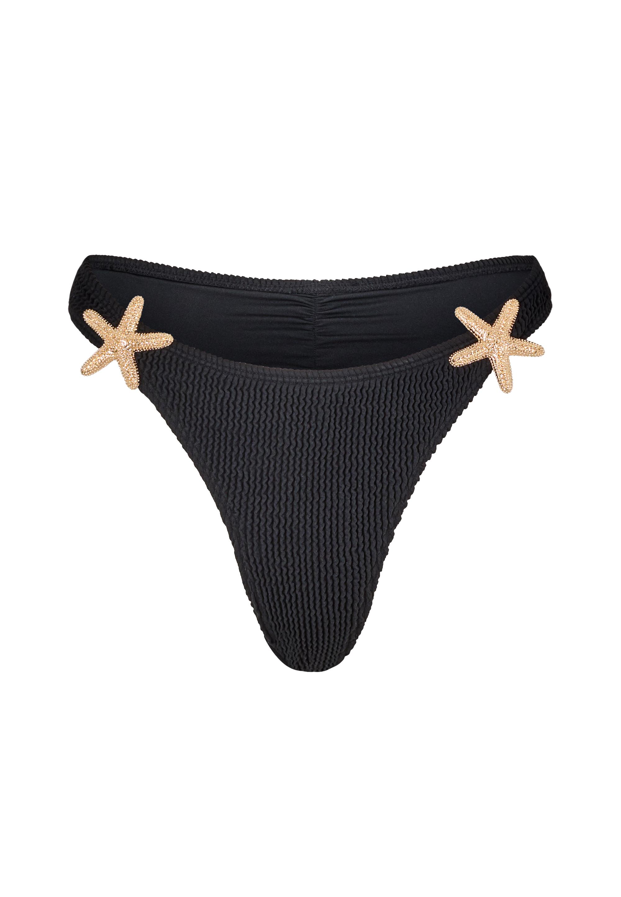 Verleihe deinem Beach-Look verspielte Raffinesse mit der Bikinihose von Moda Minx. Das Scrunch-Material sorgt nicht nur für eine strukturierte, figurbetonende Optik, sondern setzt auch modische Akzente. Besonders ins Auge fallen die seitlichen Seestern-Elemente, die dem Design einen maritimen und glamourösen Touch verleihen. Die tolle Passform schmeichelt deiner Figur und macht die Hose zum absoluten Hingucker – ideal für stylische Tage am Strand oder Pool.