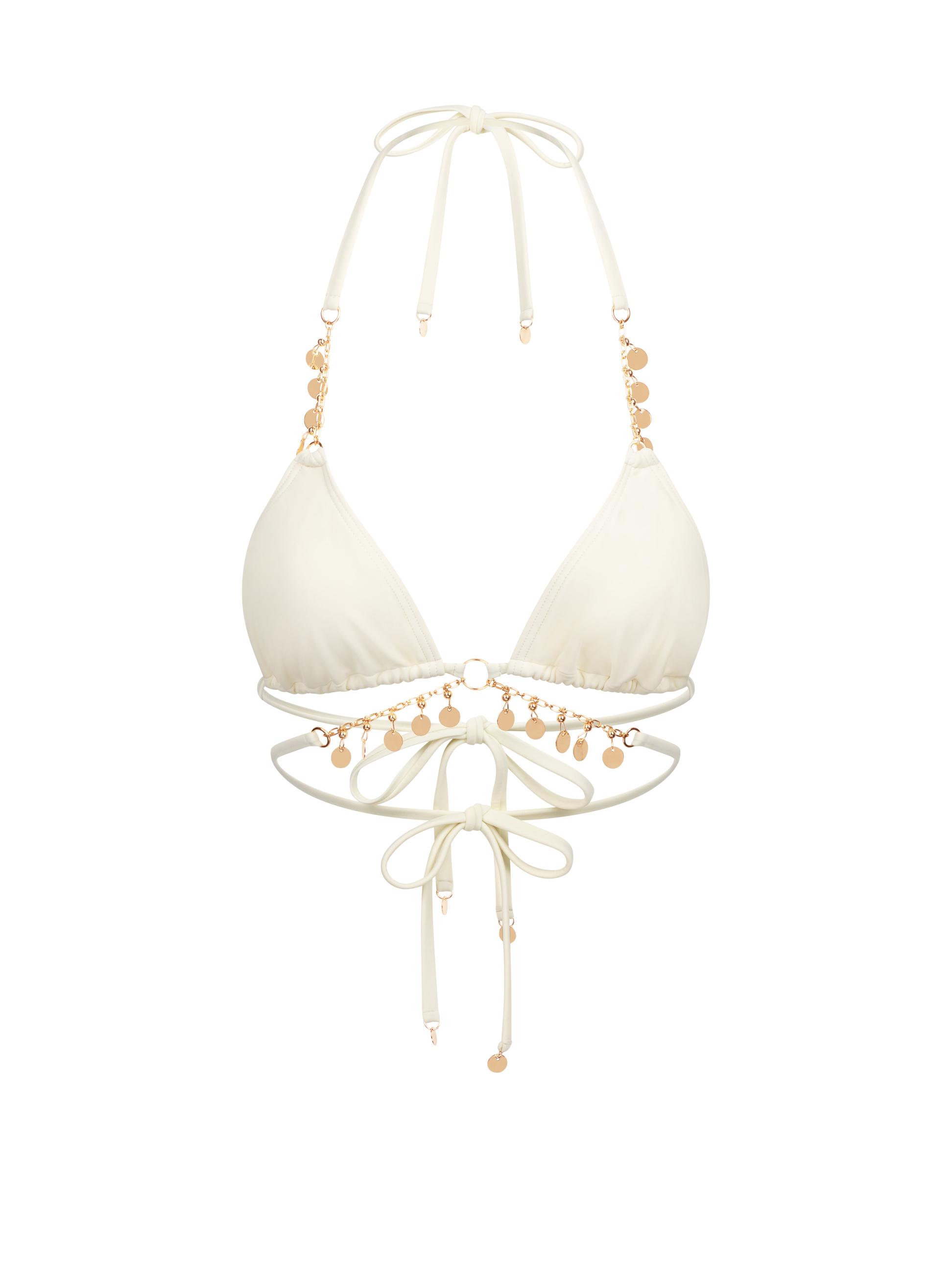 Das super modische Bikini Oberteil 'Valentina Coin' von Moda Minx strahlt mit der Sonne um die Wette! Es ist ein richtiger Hingucker in der Sommerzeit. Durch den tollen Schnitt, passt es sich schmeichelnd an den Körper an. Nicht nur perfekt für den Strandurlaub, sondern auch für die Badezeit am See oder Schwimmbad. Um den Look zu vervollständigen, kombinieren Sie das passende Unterteil dazu. Das Bikini-Oberteil wird im Nacken und am Rücken gebunden.